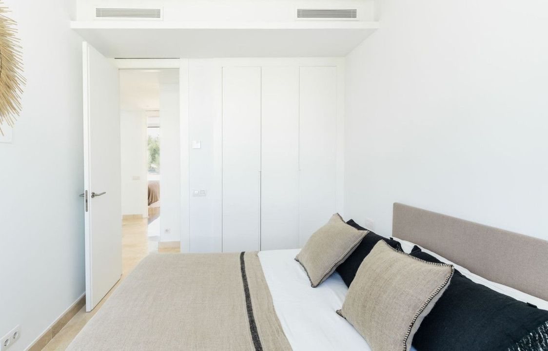 The master suite is located on the first floor and includes built-in wardrobes, an en-suite bathroom and its private terrace. Further there are 2 guest bedrooms with built in wardrobes, which overlook the gardens, and 1 bathroom. All bathrooms have custom made cabinets under the sink.