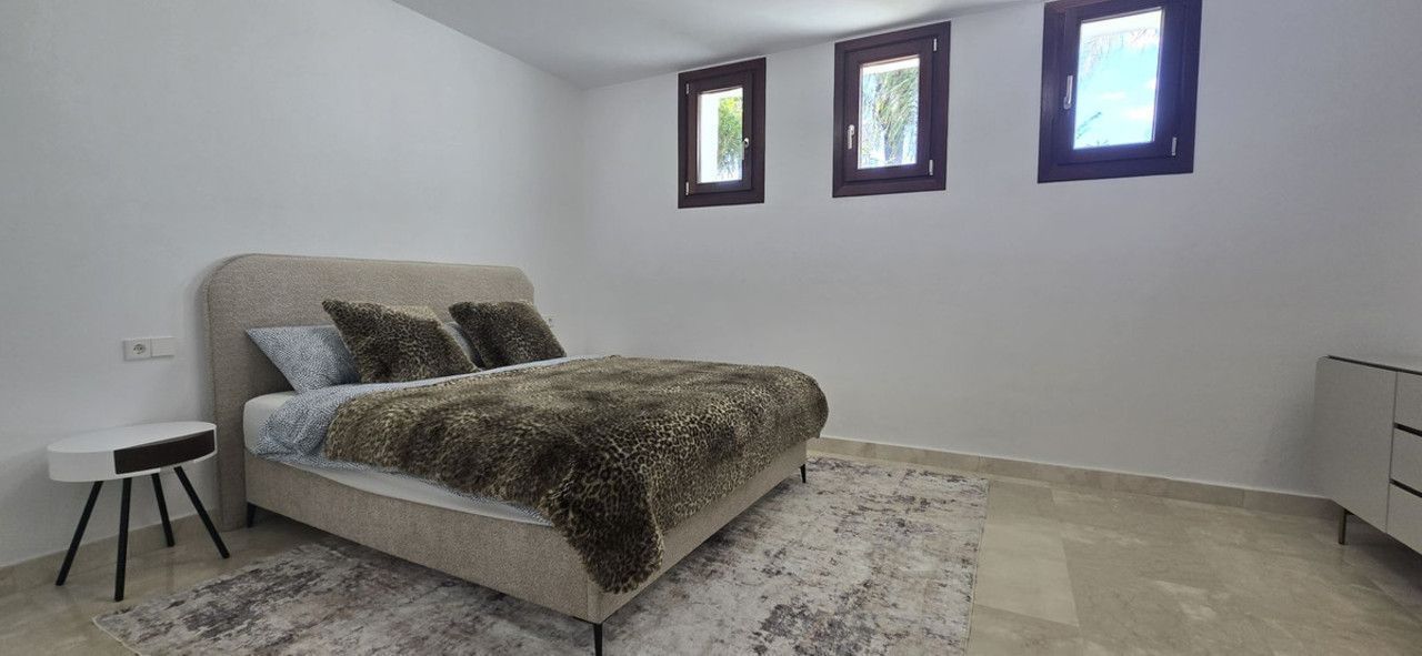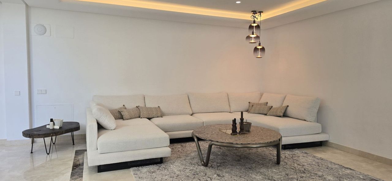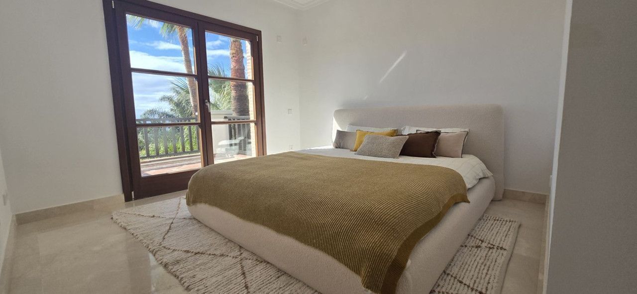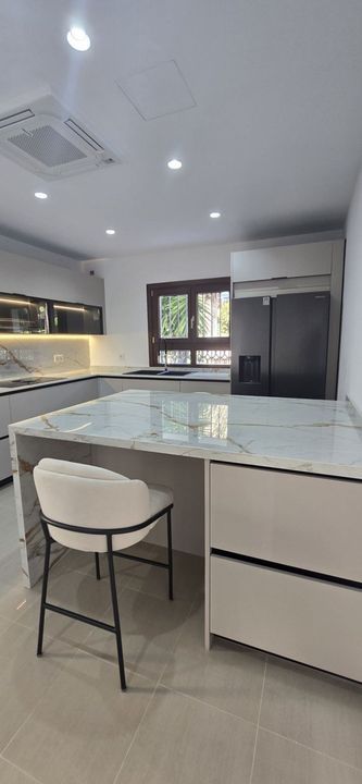 This beautifully renovated villa is located in the highly desirable gated community of La Capellania Hill Club, on the prestigious Golden Mile. Spanning nearly 500 sqm across three floors, all connected by an elevator, the villa boasts six en-suite bedrooms. The spacious living and dining areas offer stunning views of the lush gardens and the sea, while the large, fully renovated kitchen features a separate dining area.