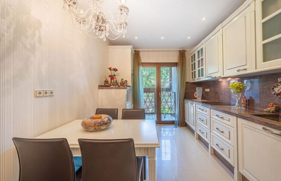 The apartment offers 4 generously sized bedrooms with en-suite bathrooms and a bright living area that opens onto a large south-facing terrace with sea views. The terrace is also accessible from the master suite and a second bedroom currently used as an office.