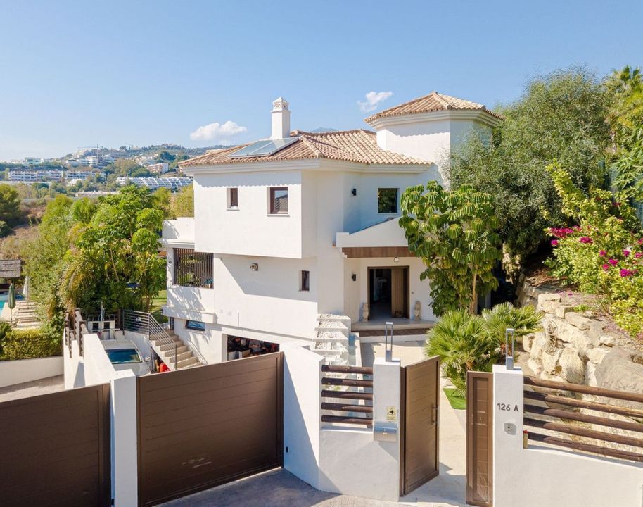 Charmante vrijstaande villa gelegen in Nueva Andalucia. Gelegen aan een afgelegen privéstraat met een beveiligde slagboom, genieten bewoners van gemoedsrust en privacy in deze gated community.