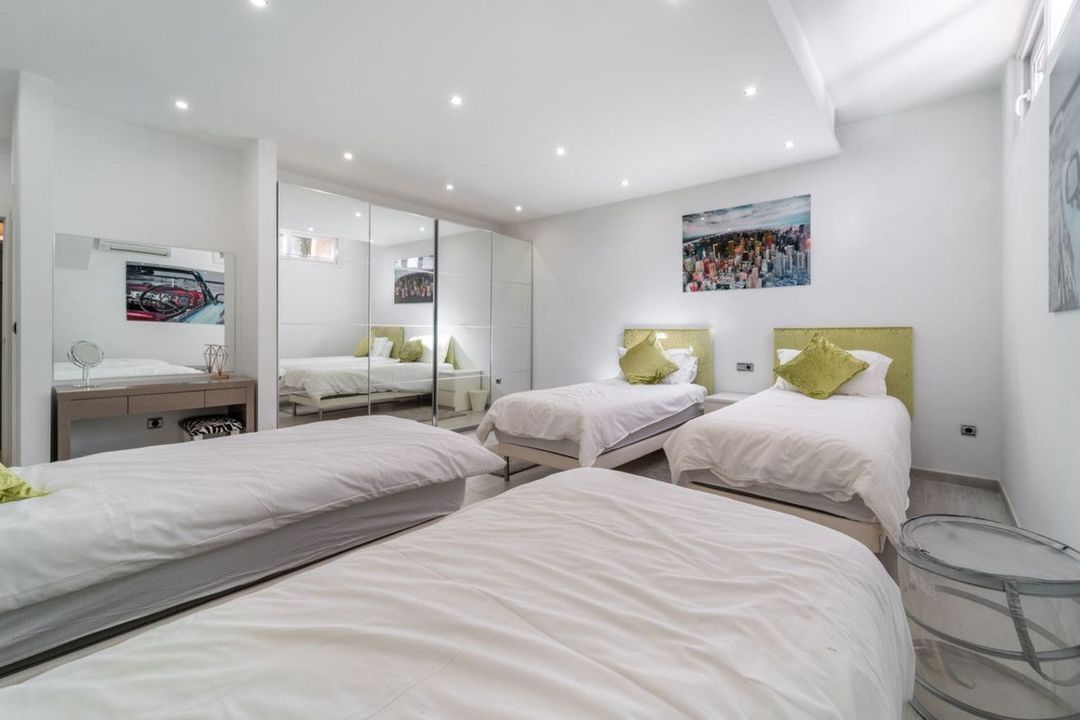 On the first floor you will find a large master bedroom with en-suite bathroom and plenty of wardrobe space with access to a terrace, also a guest bedroom and bathroom, while the third floor hosts an additional bedroom with its own bathroom, offering privacy and flexibility. The home is crowned by a roof terrace with stunning sea views, ideal for sunbathing and enjoying the Mediterranean climate.