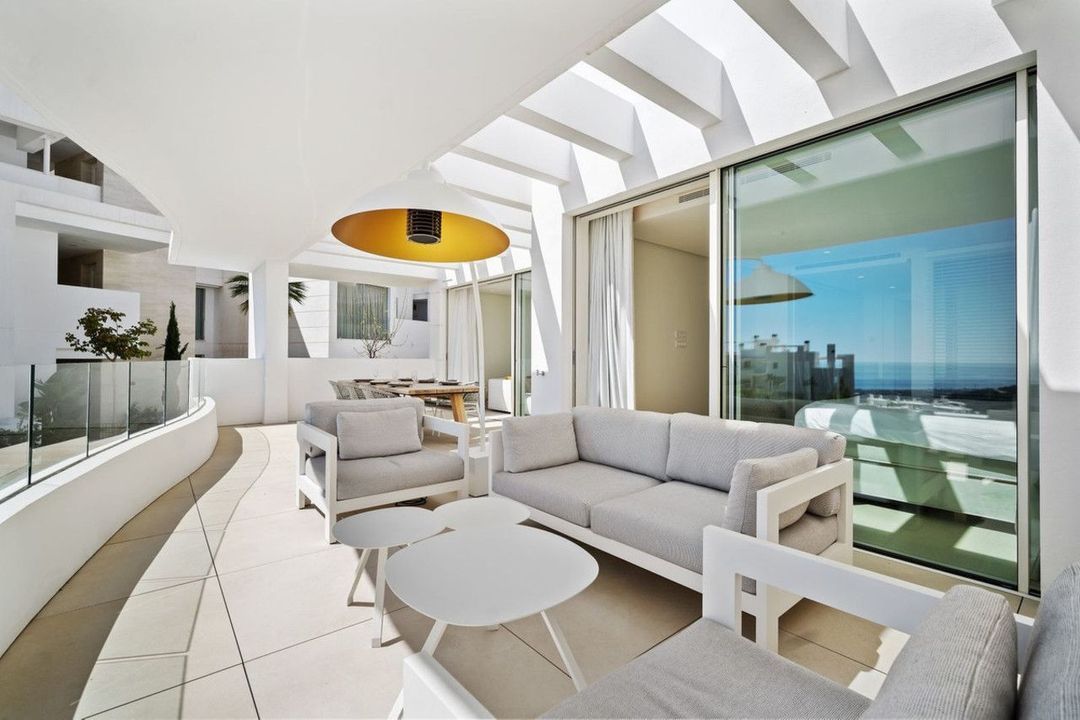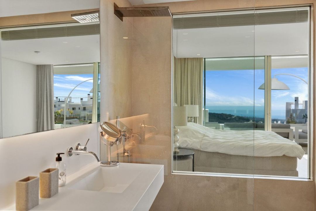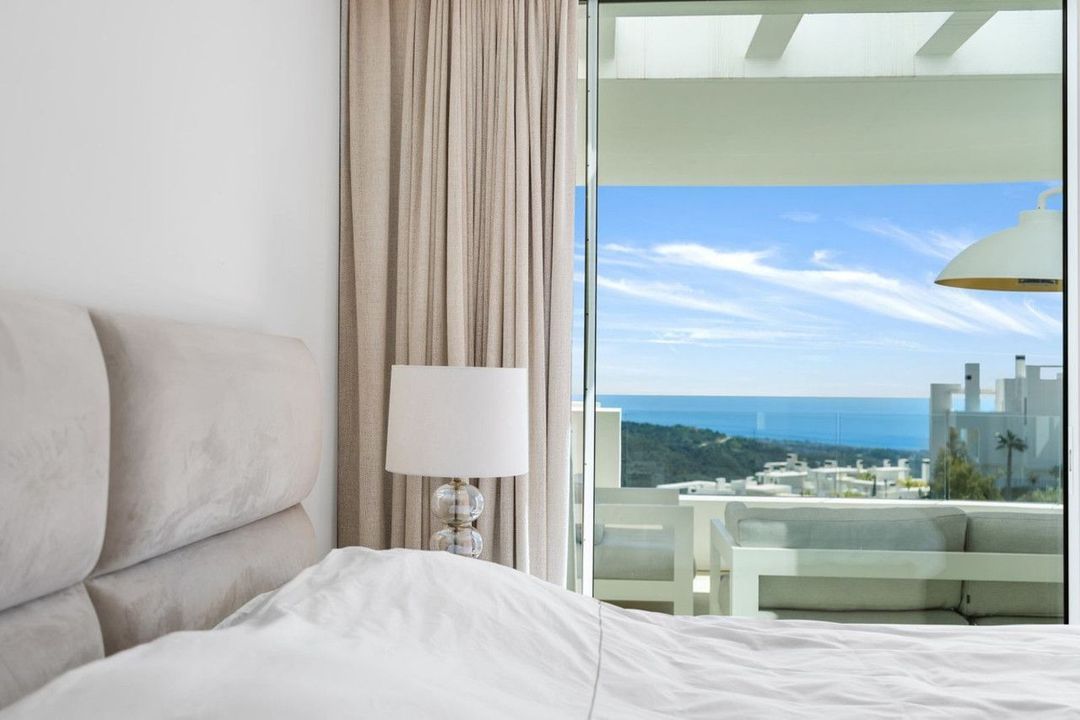 Impressive contemporary flat, with sensational sea and mountain views. Las Jacarandas has two private outdoor pools with children's play areas and gardens. Residents also have full access to all the amenities of Palo Alto including, concierge services, a world-class health club, horse riding, spa and beauty facilities, paddle tennis courts, gym, tennis courts, a social club, a kids club, and endless space to enjoy the natural beauty of Sierra de las Nieves.