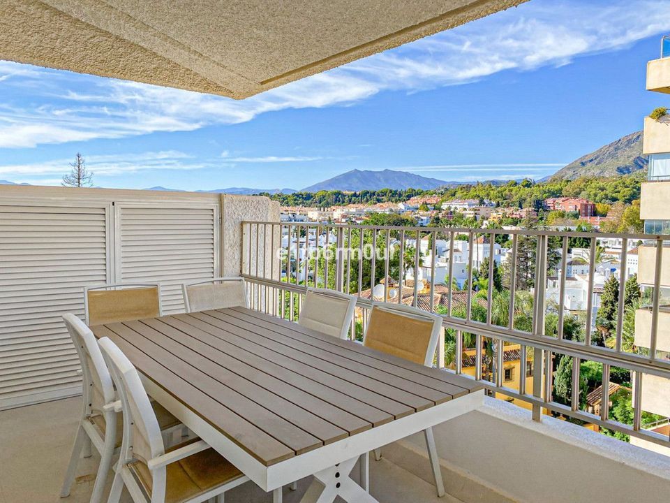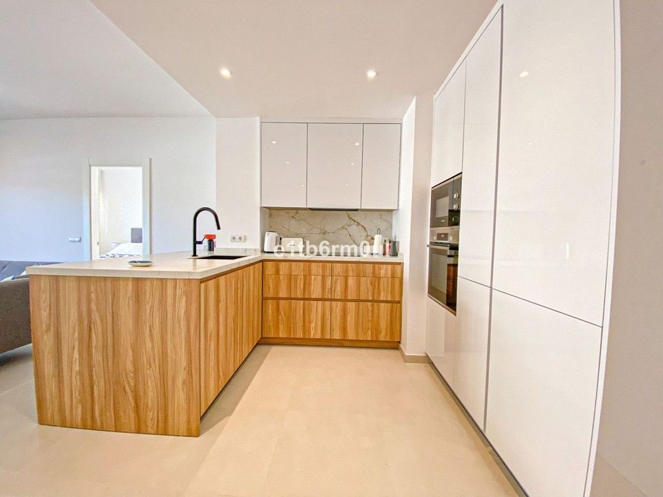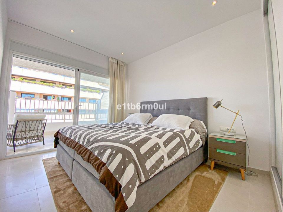 Beachside recently reformed, to a very high standard, apartment that is ready to move into. This fabulous bright, spacious, airy apartment is a perfect home or investment property. The location is ideal, only a three-minute walk to the beach and Marbella's Paseo Maritimo. A short walk into the centre Marbella and 5 minutes from Puerto Banus. With an open-plan layout, the fully fitted kitchen flows effortlessly to the dining area and living room. The two double ensuite bedrooms are distributed on either side of the living room area ensuring privacy and giving both bedrooms access to the spacious terrace. The terrace has a seating area and an outdoor dining area that comfortably seats six people and enjoys panoramic views over the Golden Mile and towards the mountains. The community has beautiful quiet gardens and two swimming pools. There is communal car parking for residents.
