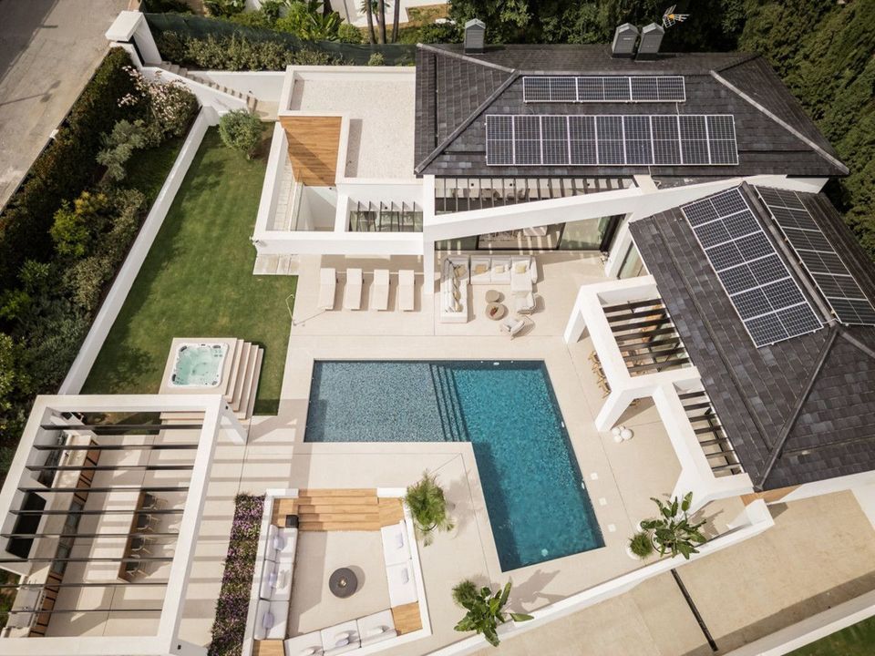 The villa is built mainly all on one level plus lower level, quite rare to find on the market. It has a fresh, modern feel throughout. Decorated in a soft, neutral palette, it feels relaxed, luminous and welcoming.