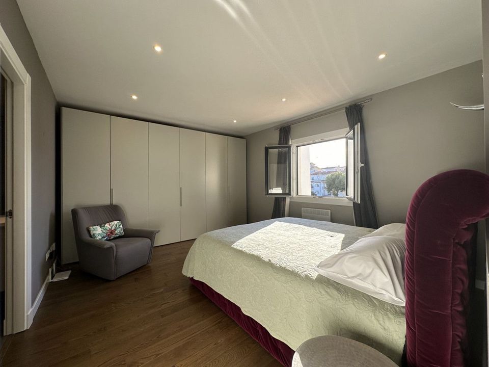 Upon entering the apartment, you are greeted by a spacious living room with a fireplace, perfect for cozy evenings. The apartment is fully furnished and features parquet floors and wooden floors, adding to its elegant and sophisticated style. The dining room is separate, creating a defined space for enjoying meals with family and friends.