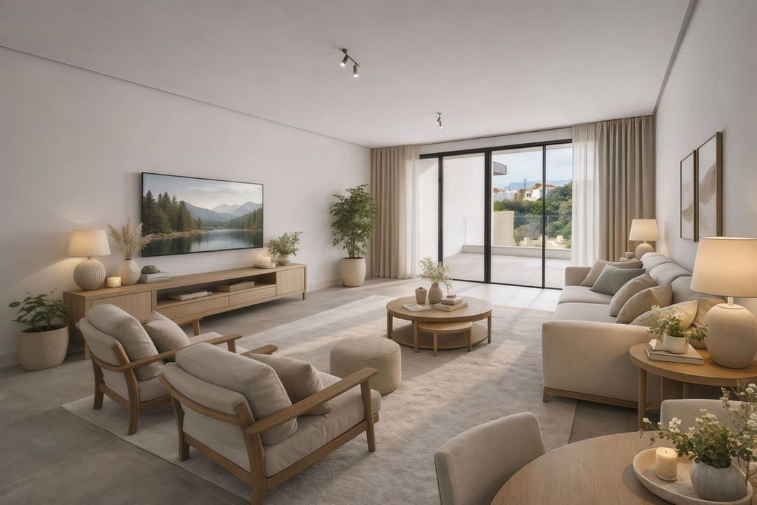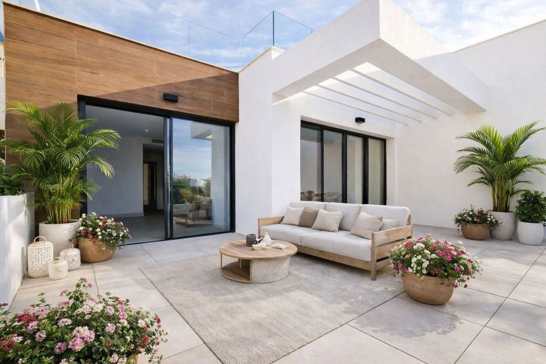 Discover the charm of this 2-bedroom luxury apartment nestled in the coveted enclave of Artola, just a delightful 20-minute stroll from the beach. The main allure of this residence lies in its prime location in a luxury complex boasting a gym and indoor pool. As you step inside, a discreet laundry room to your right, provides ample shelf-space for linen and the washing machine and tumble dryer. The 2 bedrooms are all conveniently located ahead of you (one of which is ensuite), and the kitchen/dining area is immediately to your left, leading out to the spacious terrace. The apartment is equipped with an energy-efficient heat pump system that bestows hot or cold air according to your needs. Both bathrooms also have underfloor-heating. Easy access to the rooftop terrace, where you can enjoy the sun throughout the year. Parking is a breeze with not one but two dedicated spaces – an indoor space for your vehicle and an outdoor convenience for guests. This flat is nestled within a secure gated complex, granting you exclusive access to a cutting-edge gym for your fitness pursuits. Step into the outdoors to find a spacious pool area, perfect for unwinding in the Mediterranean sun. For those cooler days, retreat to the heated indoor pool.