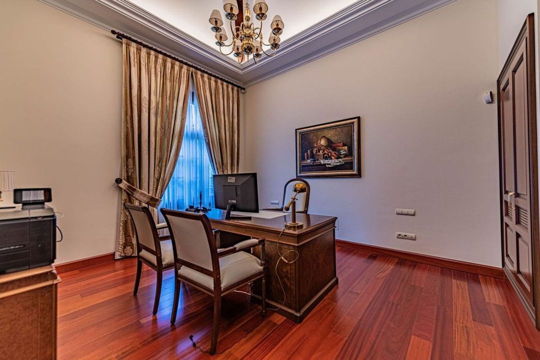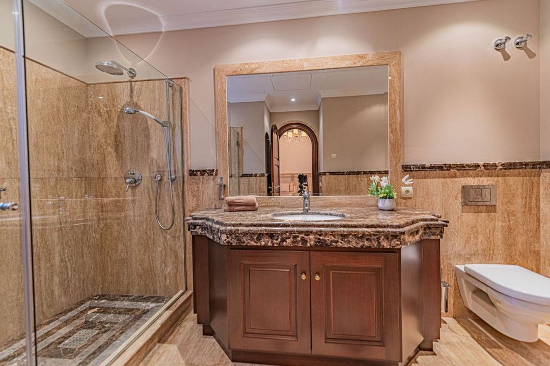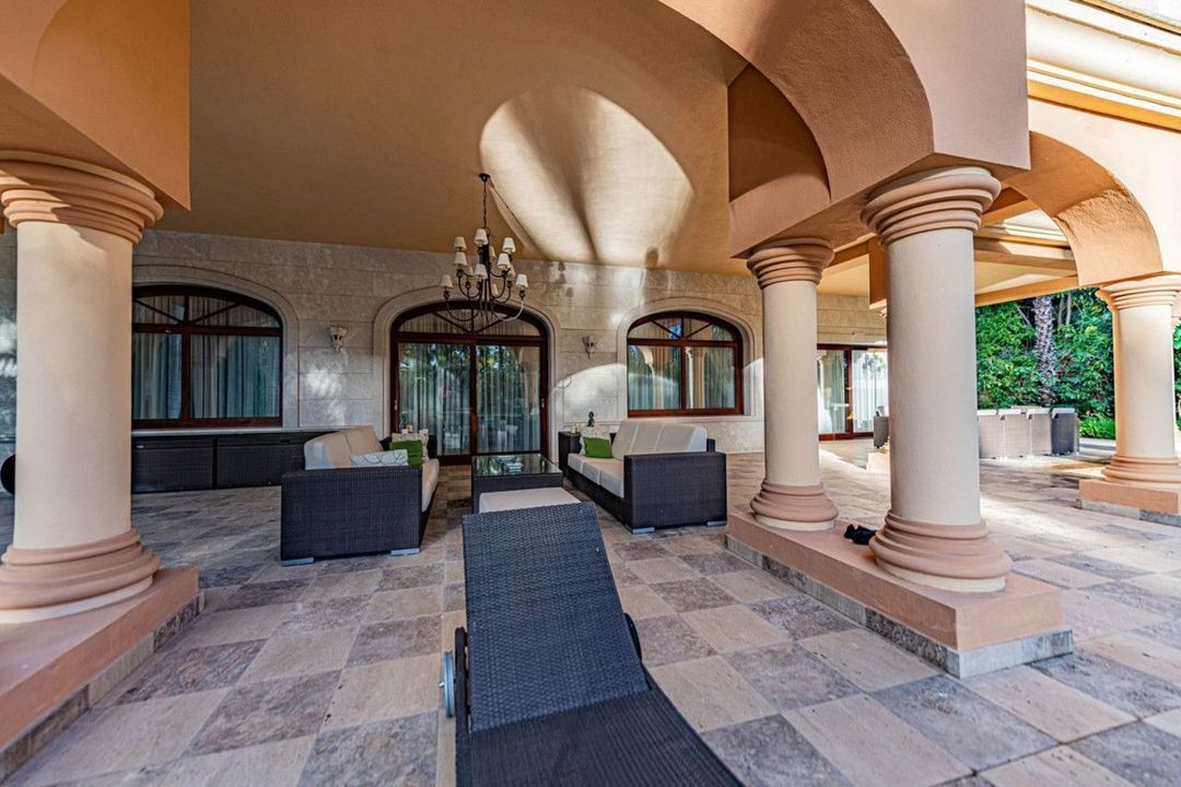 Luxury andalusian style villa that resides magnificently in one of the most prestigious and sought-after urbanizations in Marbella, Guadalmina Baja, only 100 meters from the beach and 5 minutes from Puerto Banus. The highest quality materials have been used in the design and construction of this elegant 8-bedroom home. The natural light throughout is accentuated by high ceilings and a multi-level floor plan. The villa offers a beautiful entrance hall leading to an Andalusian patio, a large fully fitted kitchen, 2 en-suite bedrooms, an elegant formal dining room and an expansive living area that leads to the covered terraces and lavish gardens. The first floor offers 3 large en-suite bedrooms and an elegant master suite with his and hers walk-in wardrobe and a private terrace with garden & partial sea views. This extraordinary property has been especially designed for a luxury lifestyle and offers a dream entertainment area that includes a pool billiard room, a fully equipped fitness suite, a Spa with sauna, jacuzzi, Turkish bath and ice fountain, a cinema room and a signature wine cellar, making this a haven of recreation. The manicured tropical gardens feature a large swimming pool, a small lake with waterfall, and a summer pergola under mature palm trees. The villa enjoys absolute privacy. Other features of this extraordinary property include: garage for 6+ cars, private lift, under-floor heating throughout, domotic system, solar panels, separate staff apartment, etc.