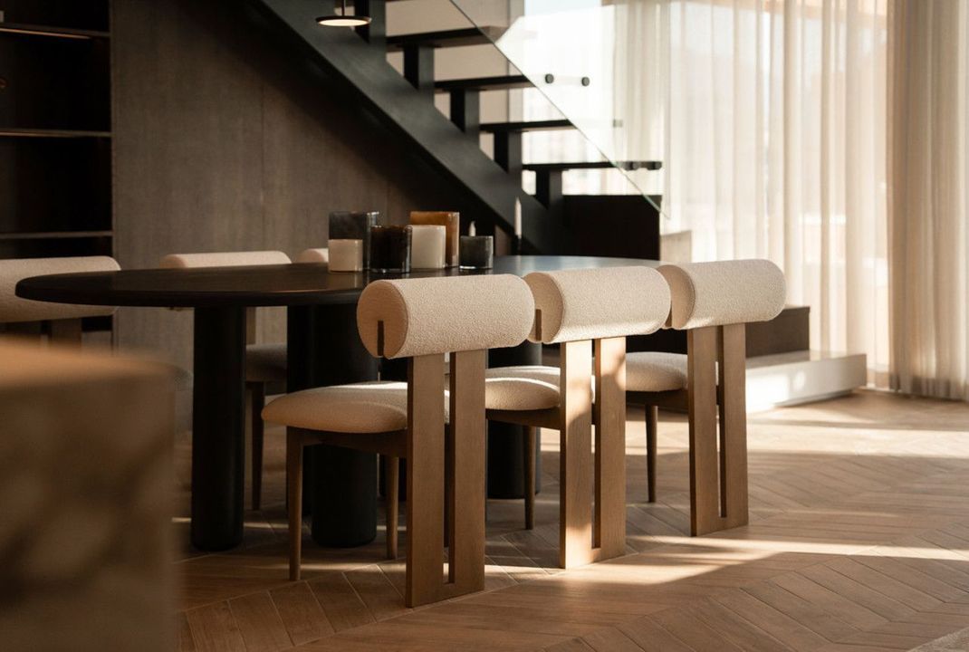 Inside, double-height ceilings and a bright open-plan layout seamlessly connect the living, dining, and kitchen areas. Every detail has been carefully updated, from the sleek finishes to the underfloor-heated bathrooms, ensuring both comfort and contemporary style. Sold fully furnished, the home is ready to move into and enjoy immediately.