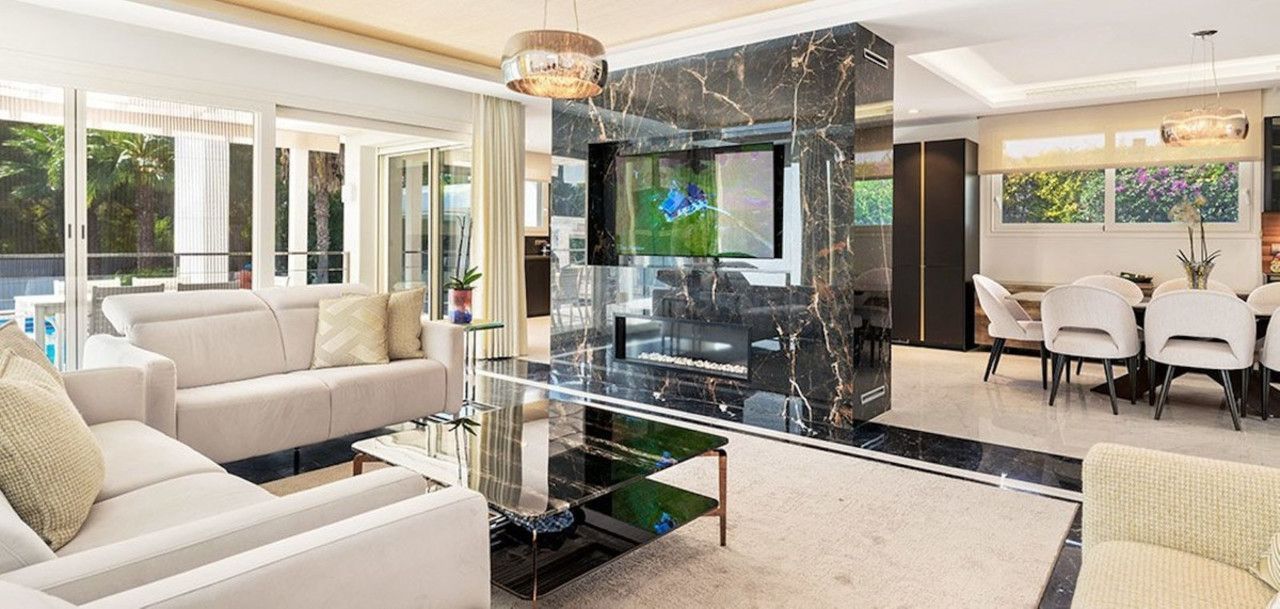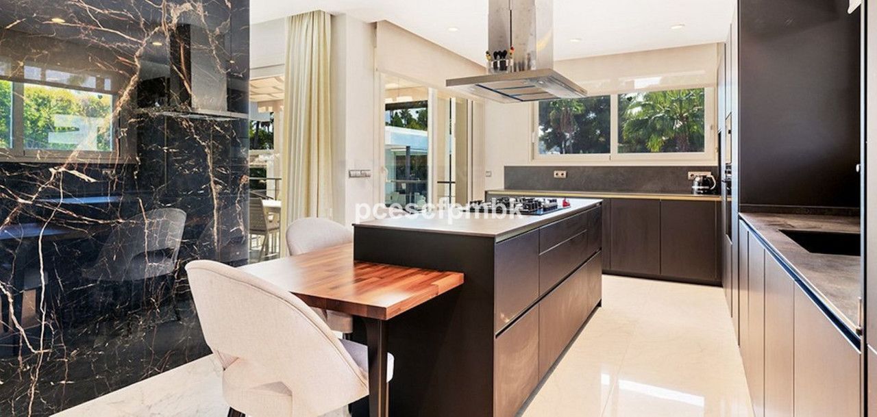 Deze onlangs gerenoveerde villa met zeven slaapkamers, gelegen op een uitgestrekt perceel van 1770 m2 tussen Aloha en Las Brisas, biedt een harmonieuze mix van verfijning en comfort.
