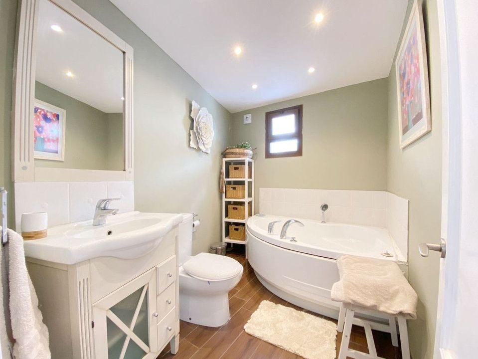 Consisting of 5 spacious bedrooms and 4 bathrooms, 2 living rooms and 2 kitchens, distributed as follows: