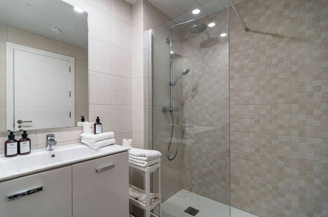 Its layout: upon entering, we find a spacious living room with an open kitchen. Both rooms connect to the covered terrace on the right side. To the left, we find a hallway with the guest bathroom on the left side. Directly opposite, there is a bedroom with built-in wardrobes. Following the hallway, we find another bedroom with wardrobes. At the far end is the master bedroom with a dressing area, an en-suite bathroom, and access to the large open terrace. All rooms are exterior-facing, with windows opening onto the private terraces. The home offers plenty of storage space; in addition to the bedroom closets and dressing room, the home also has a closet in the entryway and in the hallway connecting the bedrooms.