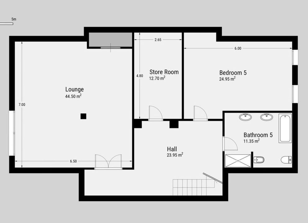 Het souterrain biedt een veelzijdige gastensuite — ideaal als privéappartement — samen met een bioscoop-/speelkamer en directe toegang tot de tuinen.