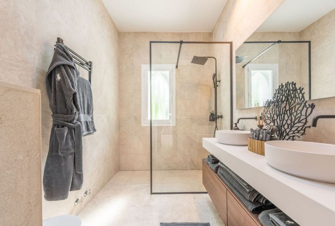 Luxe strandbungalow in Oasis Club, deze karakteristieke strandgemeenschap aan de Golden Mile van Marbella. Dit huis heeft alle woonruimte op de begane grond samen met een groot privé terras met directe toegang vanuit de woonkamer plus een ander terras boven met een prachtig uitzicht op zee. Totale bebouwde oppervlakte is 189 m2. Het huis is net volledig gerenoveerd met alleen de beste kwaliteit materialen resulterend in een zeer stijlvolle en elegante afwerking. Een mediterrane buitenkant met een scandinaviaans gevoel in het interieur! Het is de perfecte residentie voor iemand die behoefte heeft aan kwaliteit leven op een A1 locatie.