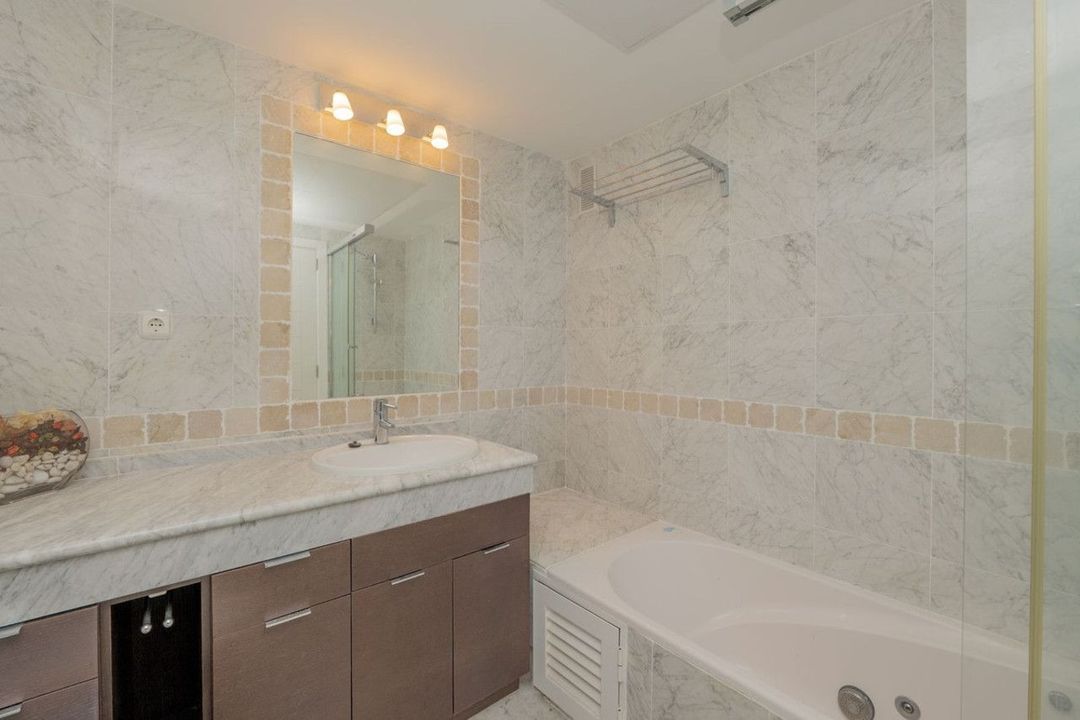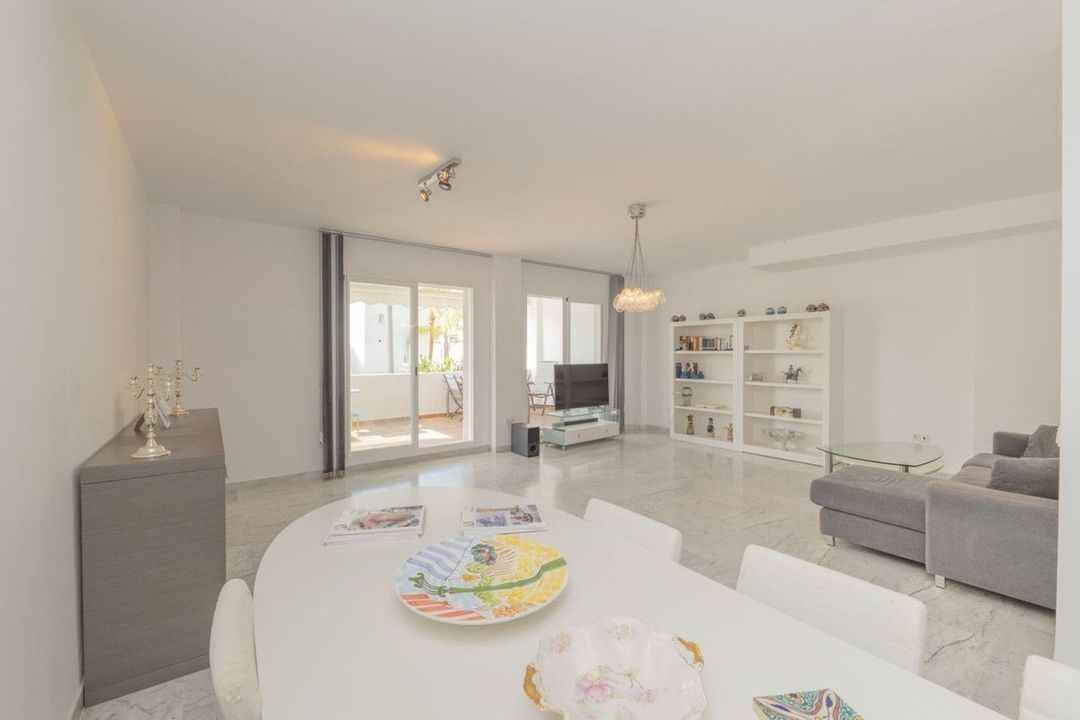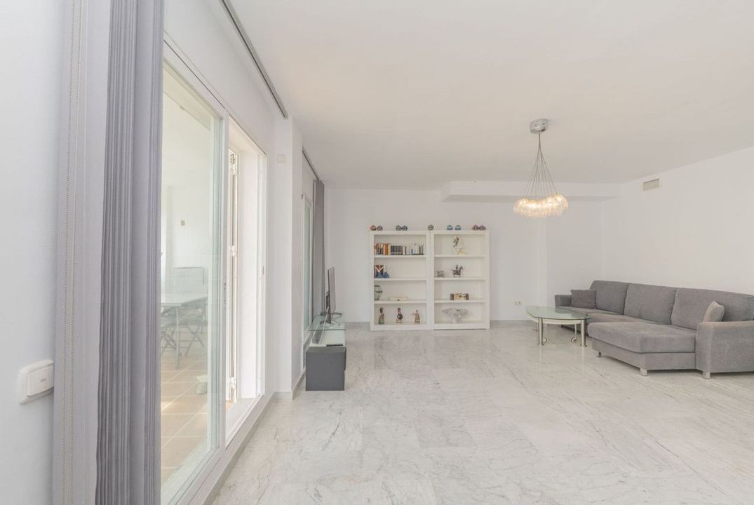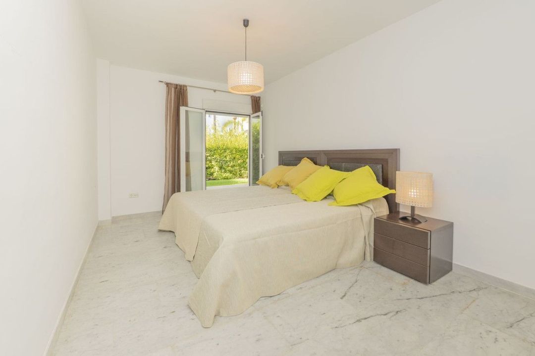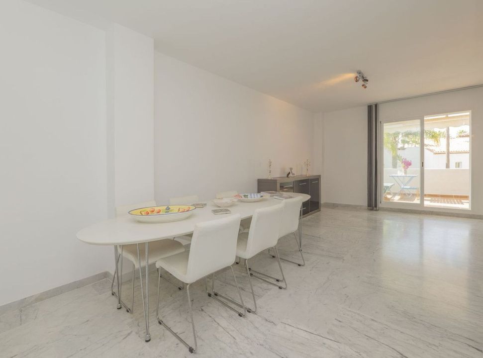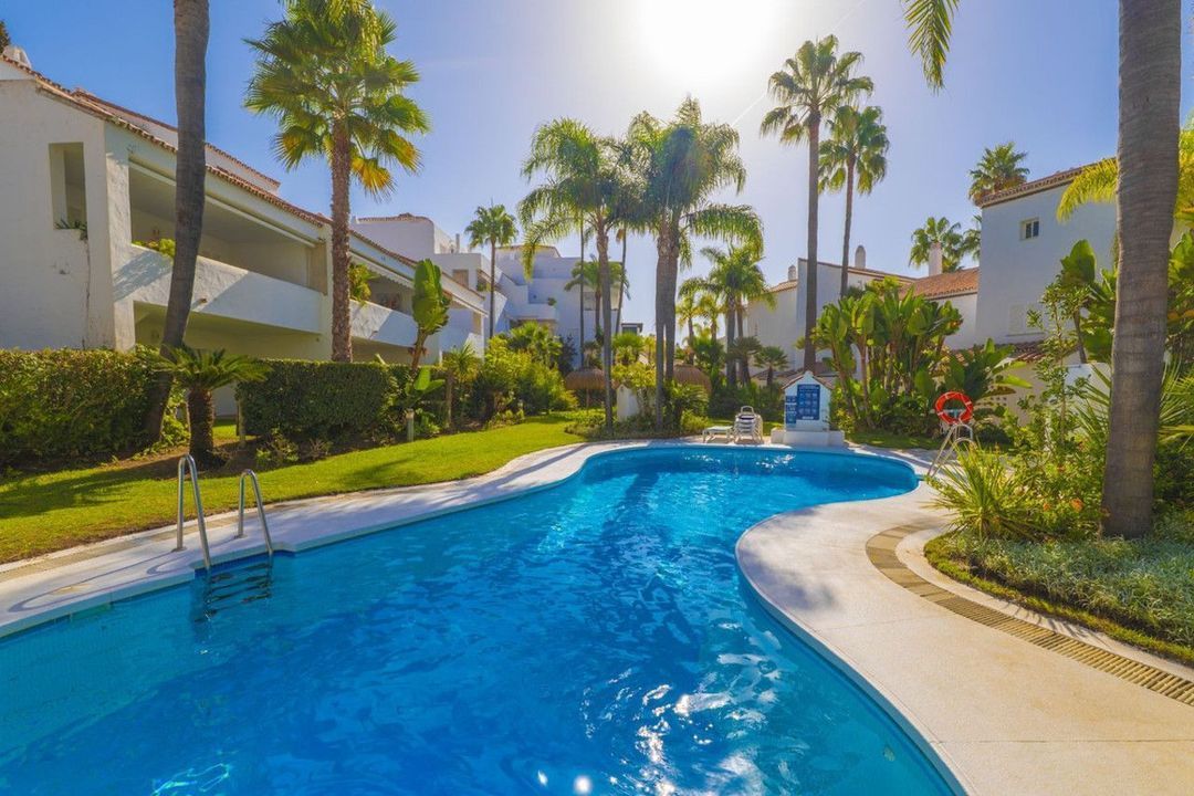 Come and meet the Paradise embodied in this charming Semi Detached House, epithome of a a Rest retreat, a quiet hideout, at a first line beach complex and despite that, tranquil, discreet and with 24/7 security ... at a mere 4km from Marbella downtown and nestled in the renonwned Bahía de Marbella Macro Community. We are talking about a Andalusian Rustic Style complex, with abundance of properly taken care of green areas, witewashed houses, with winding paths that give the impression of having a walk in a traditional Andalusian "Pueblo Blanco". This is a corner unit what increases its privacy and discretion. The dwelling display, determined by the land slide, is as follows: On the "acting" ground floor which happen to be the upper floor we enter to a huge living room, decorated in a minimalist approach what enhances the impression of the size, with a separate dining area and access to the 20sqm terrace, besides a fully fitted kitchen, separated laundry room with an ample storage wardrobe, and a complete bathroom. On the lower level, a distributor hall welcomes us leading to the two main bedrooms, both with access to the private 40sqm garden, and a complete bathroom; besides a third room that can be aimed as a living room or a third bedroom. The complex, apart of all the previous features boasts two different pool areas, social club for owners open in medium and high season, direct accesses to the white sandy beaches of Bahía de Marbella as well as the "Pasarela Litoral" a wonderful wooden promenade planned to connect the whole of the Costa del Sol along the beach. Using this promenade we will be able to go to Marbella Downtown without leaving the beach in a gorgeous walk path near the shore. The property is in perfect condition and ready to be used, either as a first home or a wise holiday home. Parking place included in the price.