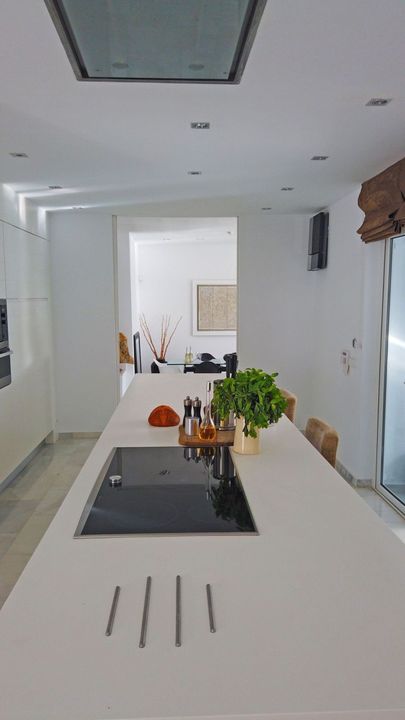 The villa has an Ibiza style to it, very big comfortable rooms flowing into each other, all the bedrooms are well thought out with great light and views with the master bedroom taking your breath away, large glass doors leading out to an amazing rap around terrace.