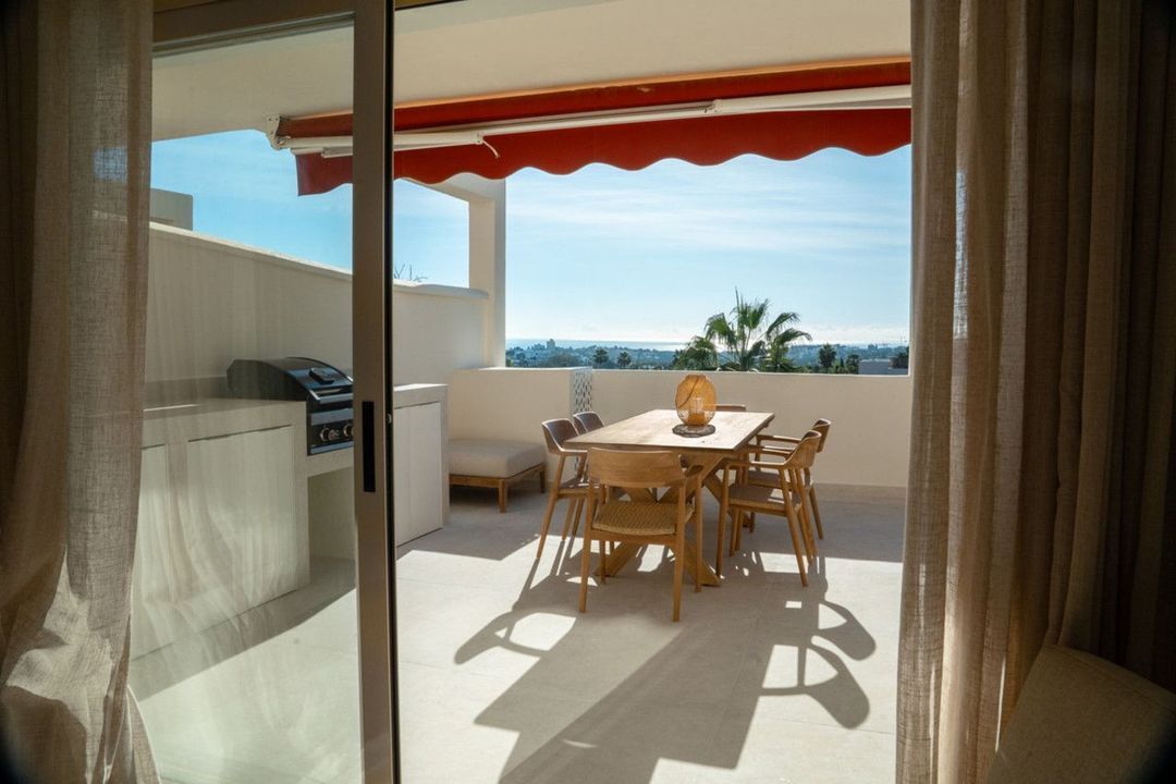 This stunning three-bedroom first floor apartment, located in the sought-after area of Nueva Andalucía, Marbella, offers an exceptional blend of etnic-Scandinavian, boho design, comfort, and elegance. Fully refurbished to an impeccable standard, the property boasts a bright open-plan living and dining space, thoughtfully created for both everyday living and effortless entertaining.