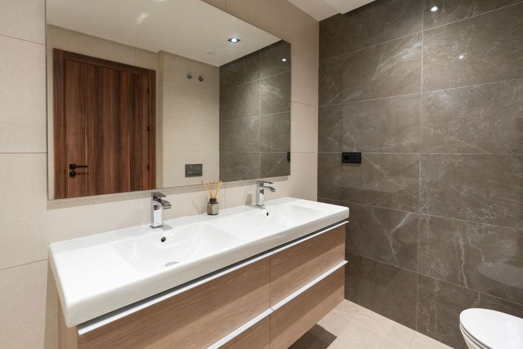 The apartment includes two well-proportioned bedrooms, with the master featuring an en-suite bathroom. A second bathroom serves guests or the second bedroom. Additional highlights include underground parking, a private storage room, and an energy-efficient design with a B rating, thanks to double glazing and eco-friendly construction.