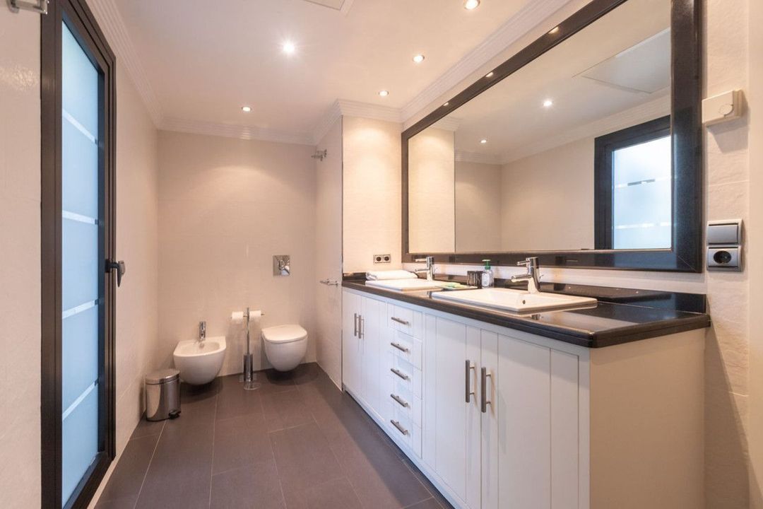 On the first floor we find two bedrooms, both with en-suite bathrooms and access to an open terrace, which also has a barbecue.
