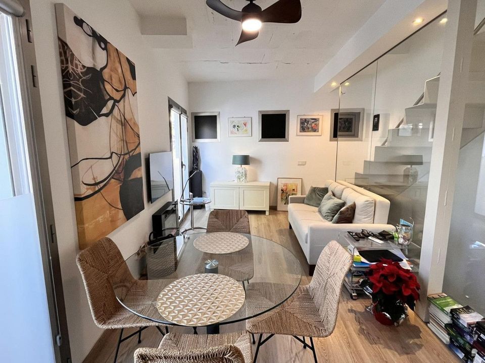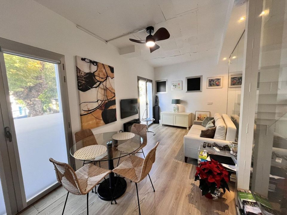 Fantastic duplex apartment in Marbella\'s Old Town, completely renovated. The only flat in the building without neighbours. Ideal for owners with dogs. This very bright apartment has a living-dining room with hot/cold air conditioning and an electric fireplace with LED technology and large windows that provide plenty of light with high ceilings, a fitted and equipped kitchen, and on the second floor there is a bedroom with a full bathroom and a terrace. Walking distance to all amenities that make your daily life more comfortable without the need for a vehicle. A step from Marbella Old Town, where you can stroll through the city\'s iconic narrow streets, and just 12 minutes from Marbella\'s best beaches and the promenade. Active short term rental License Great opportunity! Property with no extra costs. It is a candy. Come and visit!