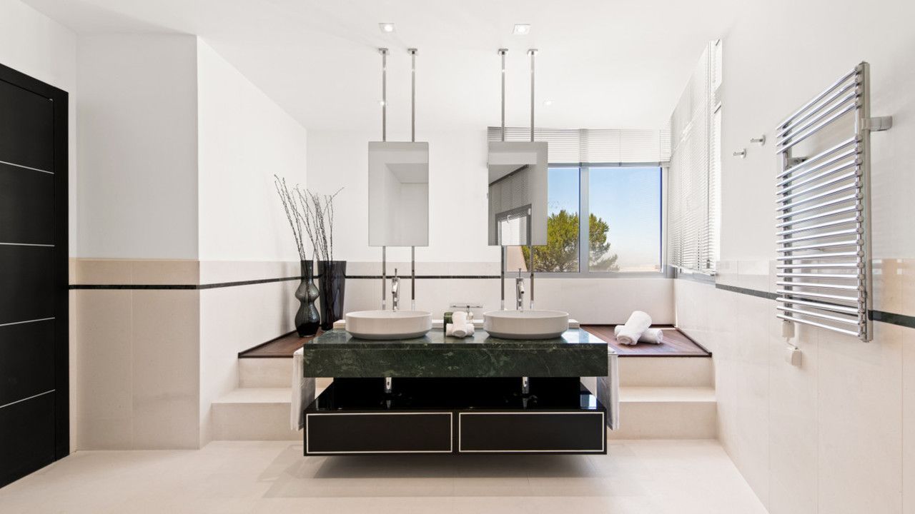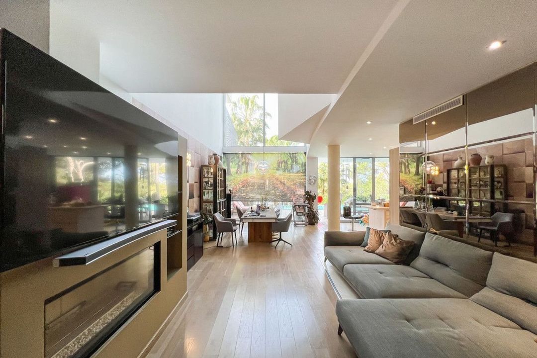 This luxurious modern house for sale in the heart of the Sierra Blanca is set in the most exclusive residential complex, Meisho Hills, built on a plot of 33.500m2 in 2012. The complex has a total of 58 semi-detached villas, including this unique corner villa, which boasts stunning views of Marbella city, the Mediterranean sea, Gibraltar, and the Moroccan mountain range.