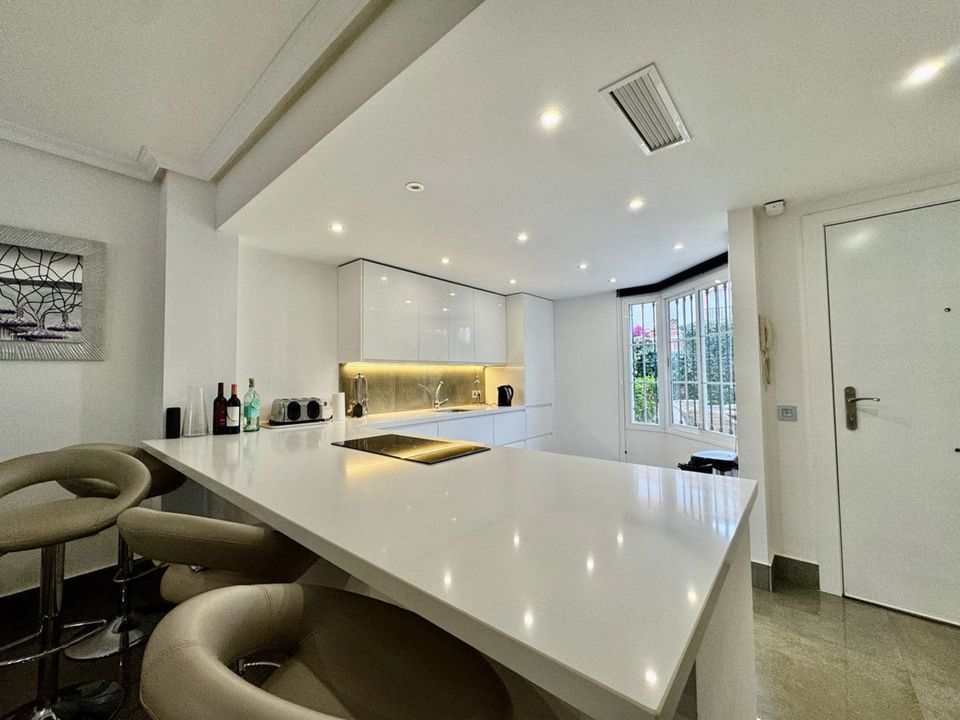 Deze aantrekkelijke woning met drie slaapkamers is gelegen op een eersteklas golflocatie, maar toch op loopafstand van het strand. Het huis heeft drie echte slaapkamers op de bovenverdieping en twee badkamers, plus een gastentoilet. Veel eigenaren hebben zelfs een extra slaapkamer en badkamer in de kelder/garage toegevoegd, terwijl deze eigenaar ervoor heeft gekozen de garage en opslagruimte te behouden. De eigenaar heeft de woning verbeterd met een fantastische moderne keuken met verlaagde plafonds en spotjes, wat de woning een moderne uitstraling geeft. Met twee mooie terrassen op de benedenverdieping en een dakterras heeft u volop buitenruimte om optimaal te genieten van het Spaanse klimaat. Het complex is omheind en heeft twee zwembaden.