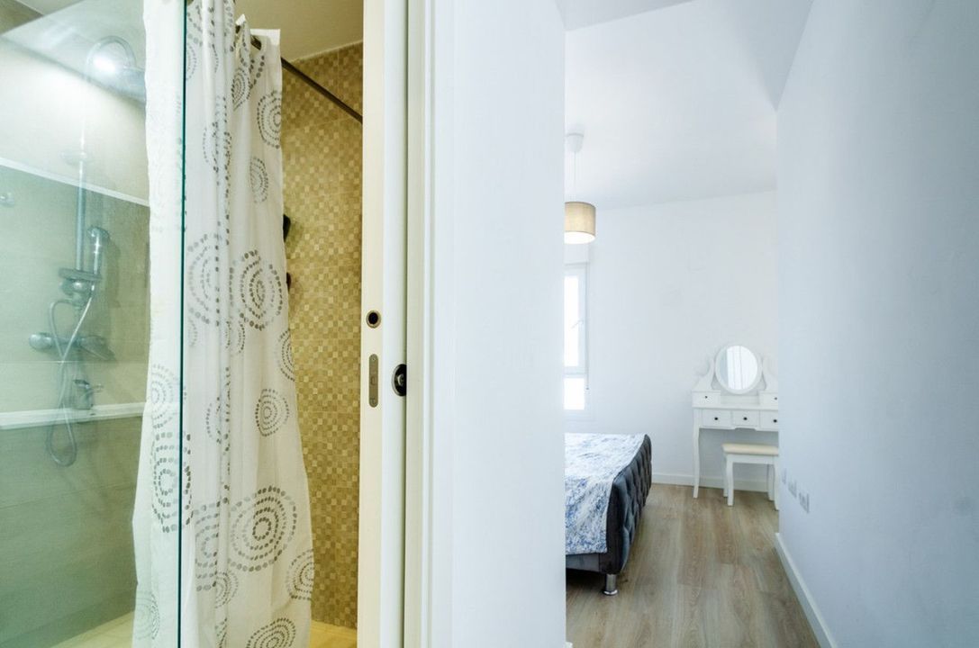 From the living room, a hallway takes you to three rooms and a bathroom, all with fitted wardrobes and windows that allow the entrance of natural light. The main room also has a small dressing room, a full bathroom and two windows that open onto the terrace.