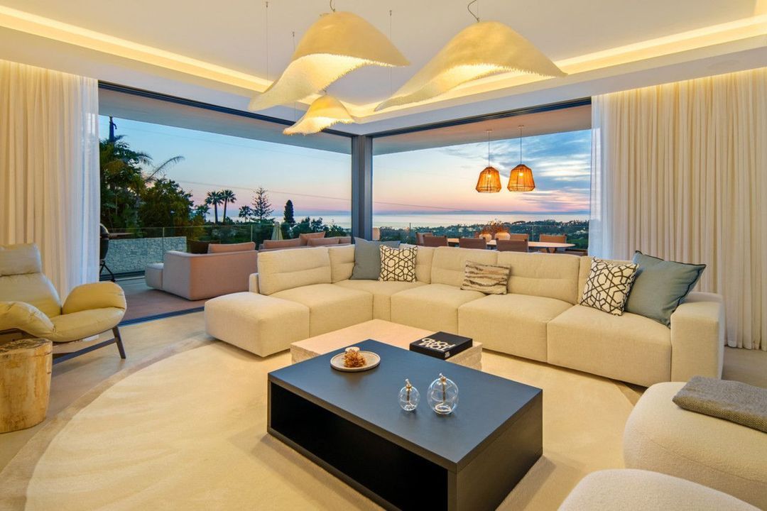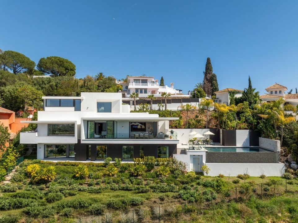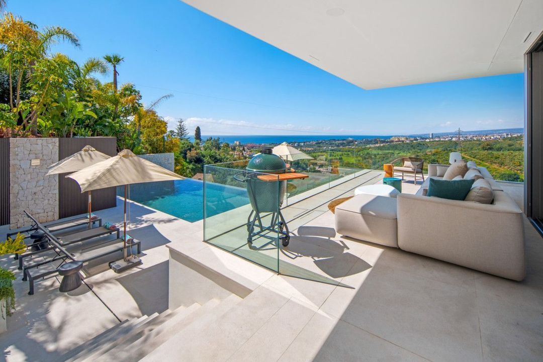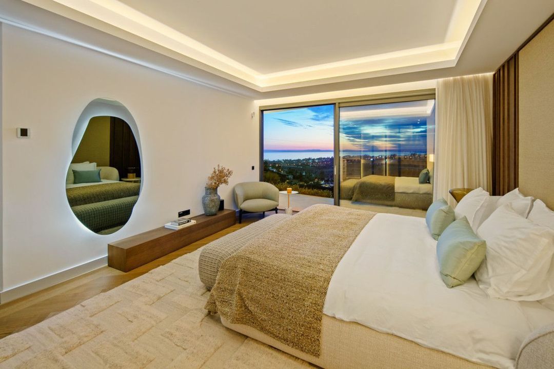 Set on a south-facing plot of over 1,000 m², this newly built villa delivers sweeping views of the Mediterranean Sea and surrounding mountains. Developed by Sands Villas and designed by Gonzalez Jacobson, the property combines sharp modern architecture with natural textures and floor-to-ceiling glass for seamless indoor-outdoor living.