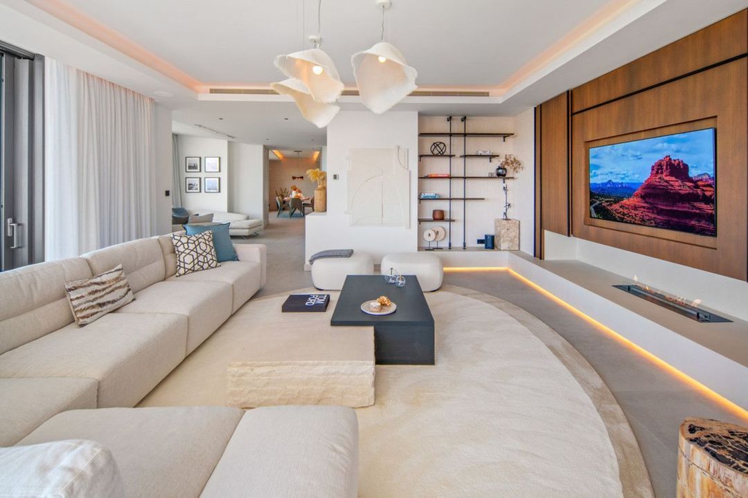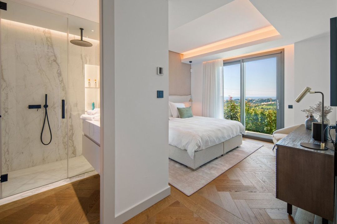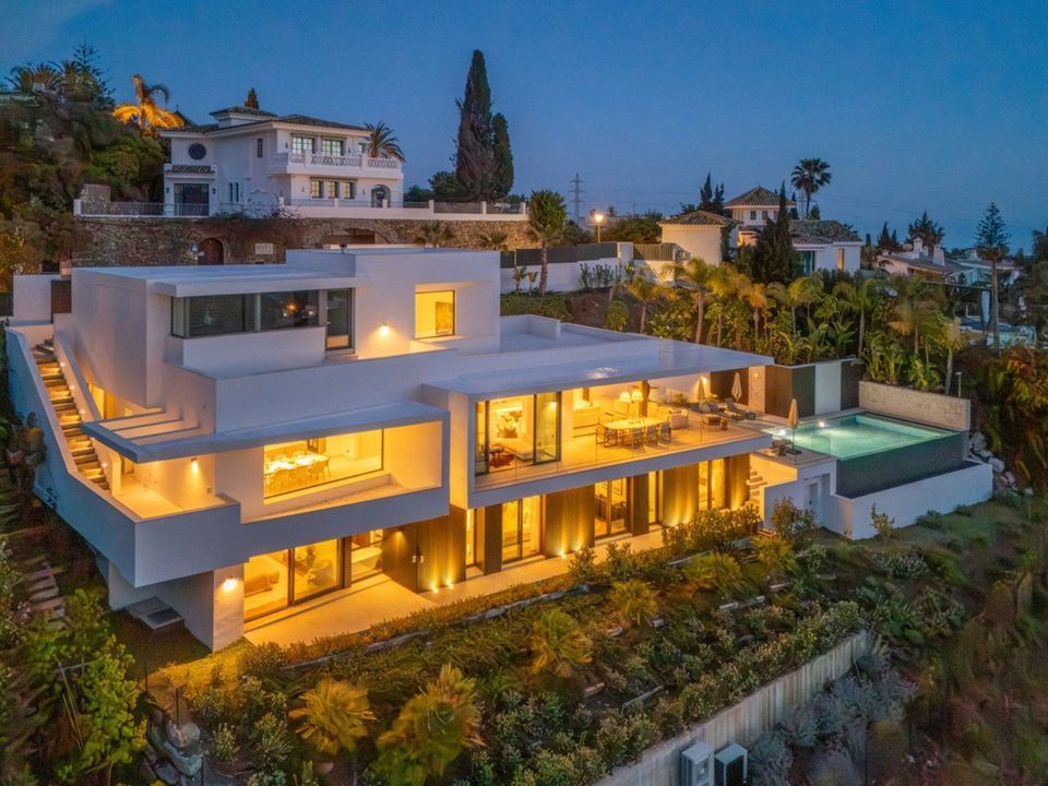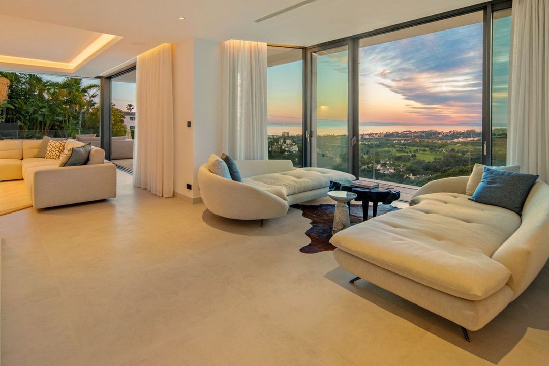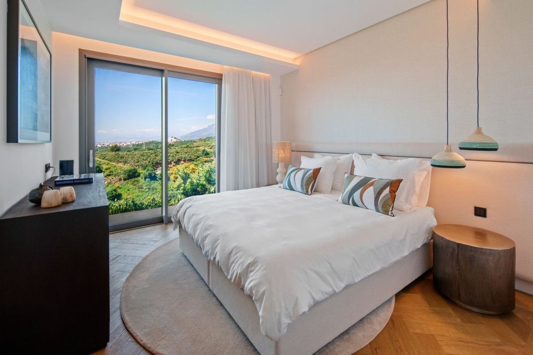 Set on a south-facing plot of over 1,000 m², this newly built villa delivers sweeping views of the Mediterranean Sea and surrounding mountains. Developed by Sands Villas and designed by Gonzalez Jacobson, the property combines sharp modern architecture with natural textures and floor-to-ceiling glass for seamless indoor-outdoor living.