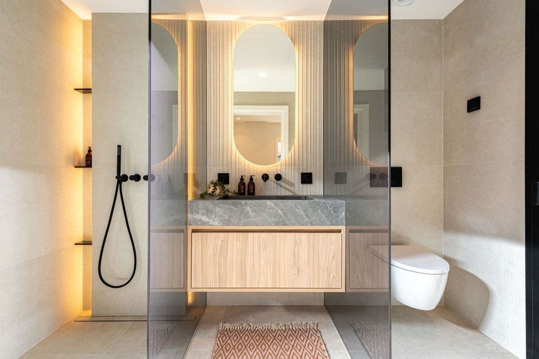 The villa offers four bedrooms, all with en-suite bathrooms, giving each family member their own comfort zone. Every bedroom is equipped with individual central AC (hot/cold) for personalised climate control. The master suite includes a makeup area, a spacious bathroom with both shower and bathtub, and a private view of La Concha — a subtle reminder each morning of where you live.