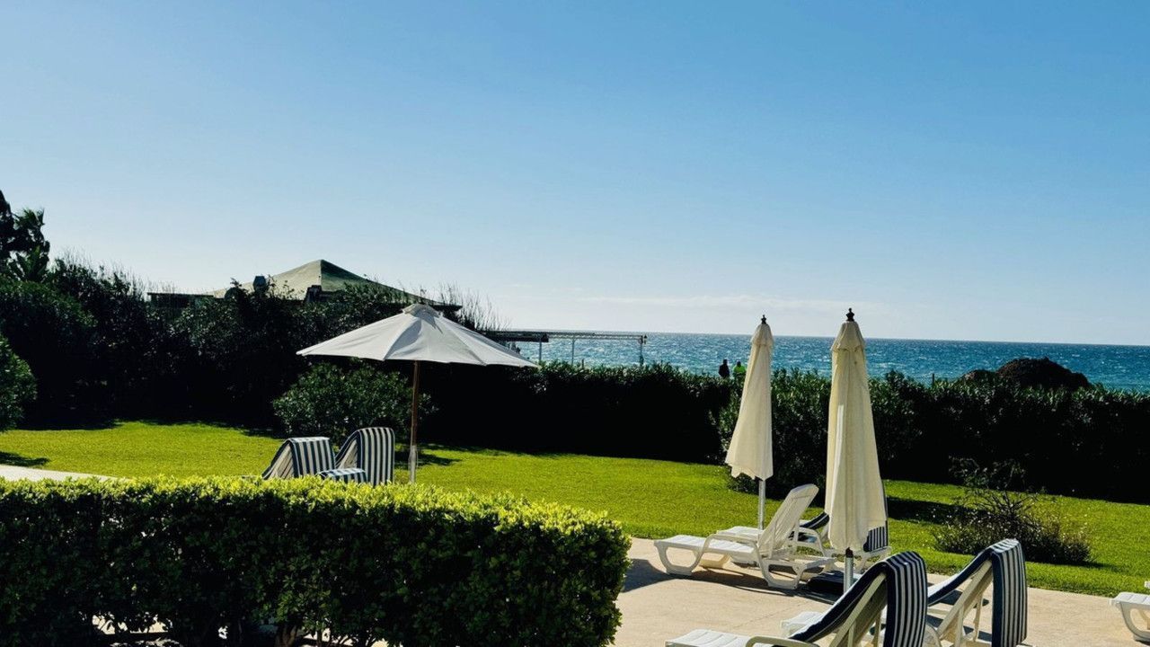 Rare opportunity to acquire a frontline beach property in the very exclusive area of Elviria located 15m drive from Marbella. This 2 bedroom 2 bathroom ground floor apartment is totally renovated modern style and is sold fully furnished. The contemporary open plan kitchen opens to the living room which leads to a covered terrace, equipped with glass curtains which can be opened when needed. The property is very bright and is part of a small very exclusive complexe of 14 apartments only, where all have stunning sea views. It is equipped with double glazing windows and electric blinds, Air conditioning Hot and Cold. The apartment has a private garden included in the title deeds and a private covered parking space. The community garden of 2400m has direct access to the beach. The size of the plot is exceptional for only 14 apartments. The beautifully designed pool, and gardens are all very well maintained. You are allowed to rent short term in this complexe, making the property a great little earner, perfect for an investor.