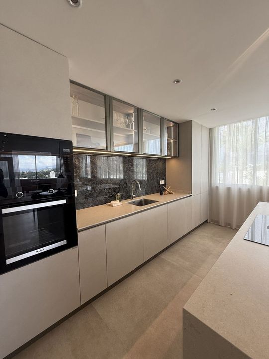 This home embodies contemporary elegance: 2 spacious bedrooms, 2 designer bathrooms, a high-end open-plan kitchen, and a sun-drenched living area seamlessly connected to an enclosed terrace, boasting uninterrupted views of the Mediterranean Sea and the iconic La Concha mountain. All Brand New!