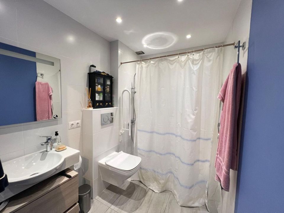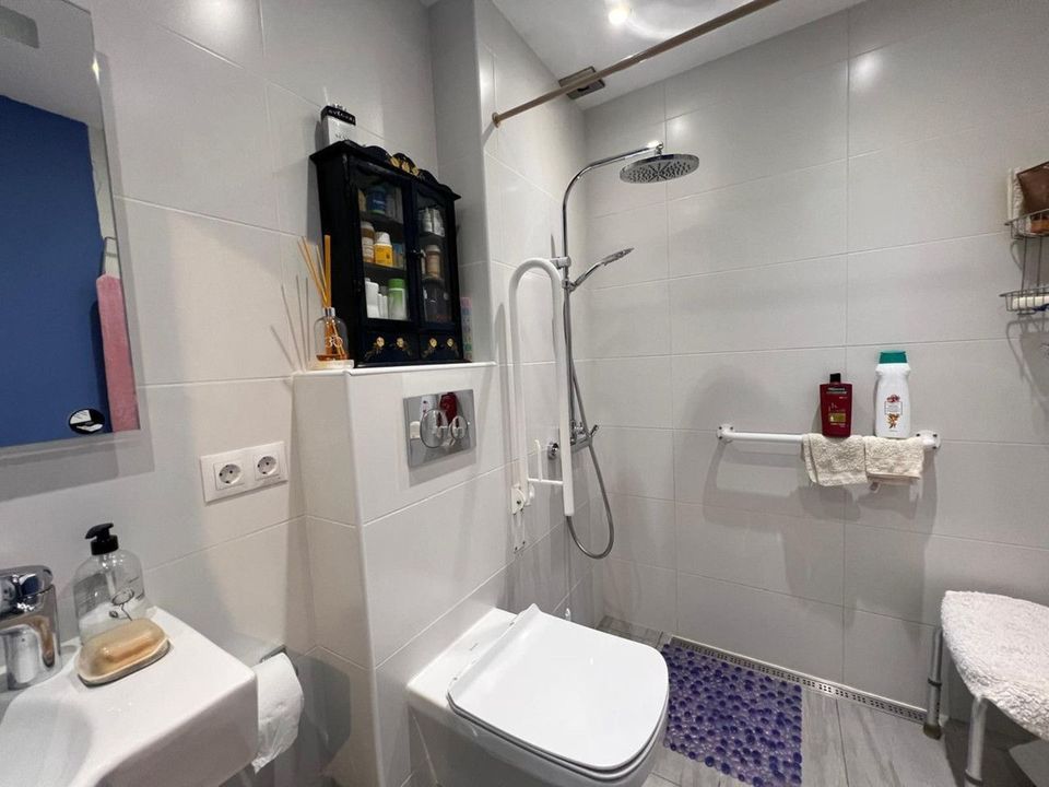 Adapted bathroom with wheelchair accessibility, a room with a built-in wardrobe, renovated bathroom, community pool, close to schools, restaurants, supermarkets, taxi and bus stops.