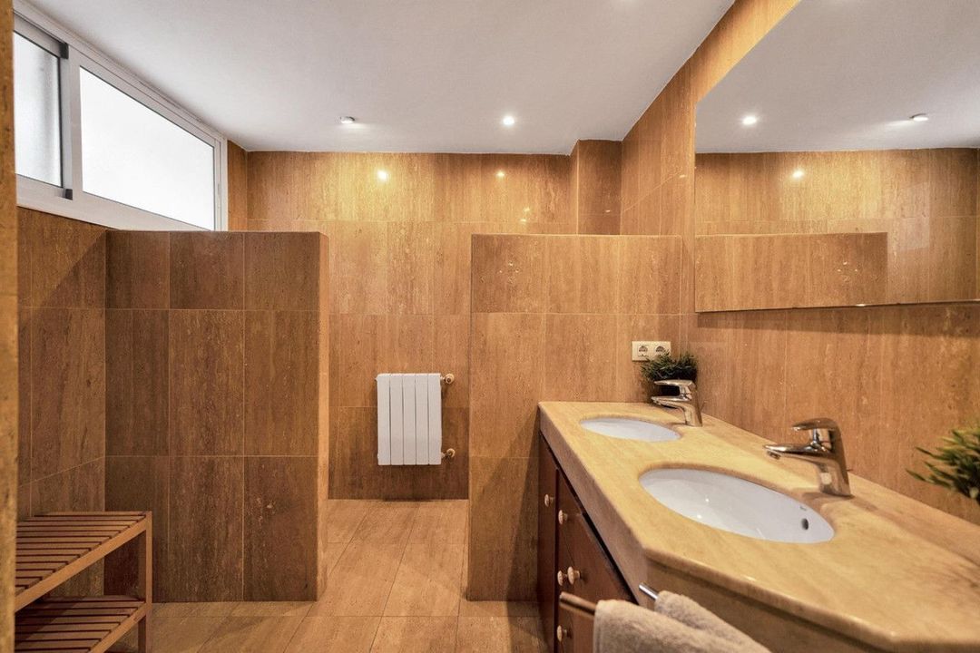 At entrance level: hall with toilet, fully equipped kitchen, spacious living room and conservatory with wooden ceiling, 3 bedrooms, 2 bathrooms.