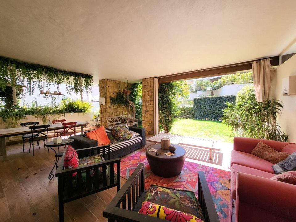 Beautiful ground floor apartment in an exclusive gated community of Marbella, Rio Real, with 3 bedrooms and 2 bathrooms, parking place, storage room ,a large private garden, with access to the tropical communal gardens and 2 swimming pools. Just 3 minutes from the beach and the famous Trocadero Playa, and close to all amenities. Also near several golf courses.