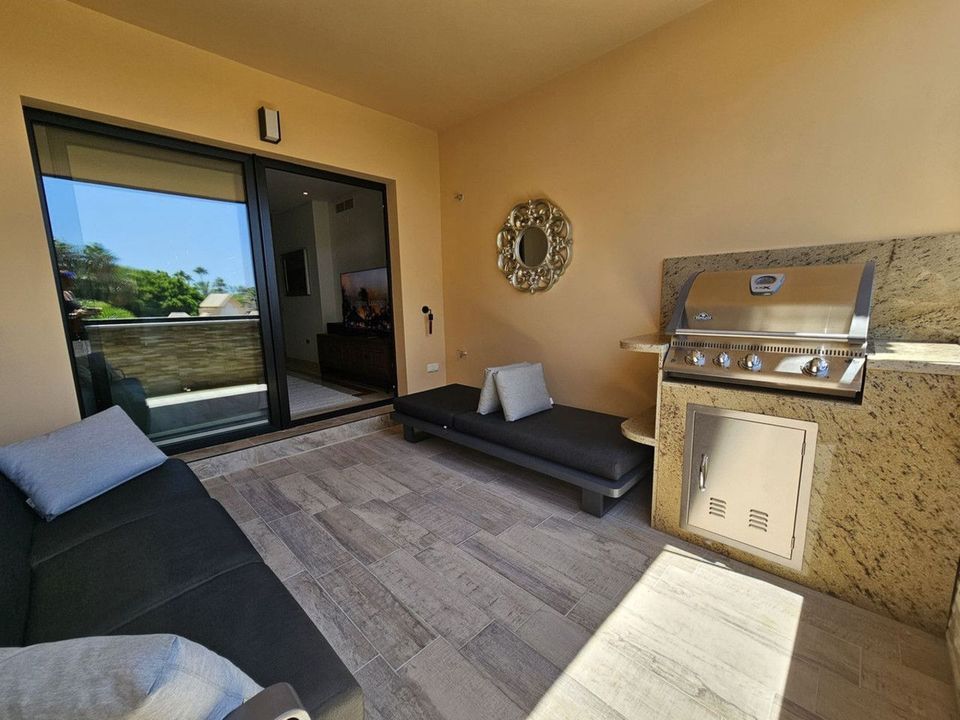 Het appartement is overal licht en luchtig, met een royaal terras op het zuidwesten met uitzicht op prachtig onderhouden tropische tuinen. Glazen gordijnen zorgen ervoor dat u het hele jaar door van het terras kunt genieten. Het terras is compleet met eet- en ontspanningsruimtes, plus een ingebouwde barbecue – perfect voor buitenentertainment.