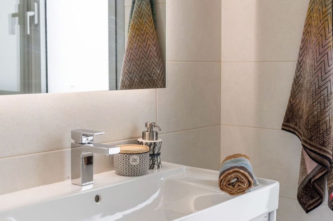 • Three elegant bedrooms, each with direct terrace access and generous built-in wardrobes.