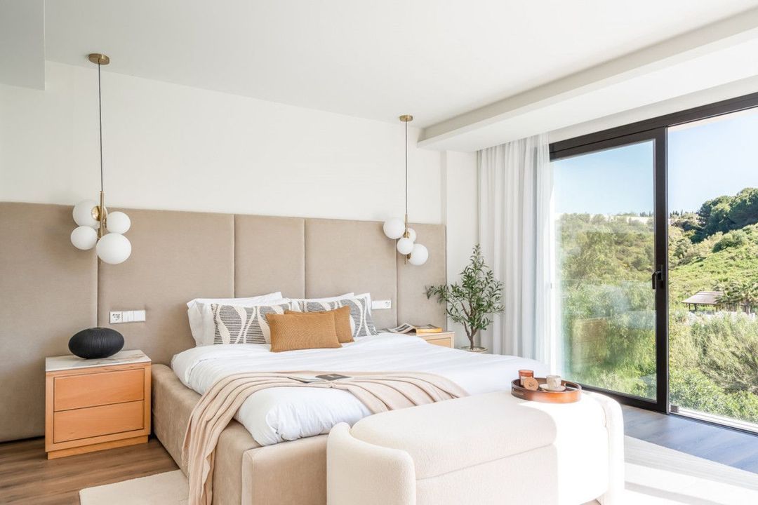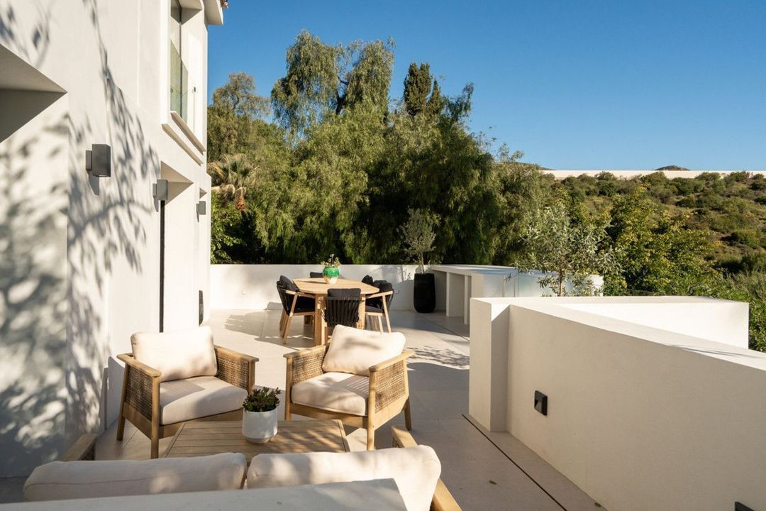 With five en-suite bedrooms and a separate guest studio with independent access—bringing the total to six bedrooms it ensures comfort and seclusion. The master suite, a peaceful retreat, provides stunning views of the surrounding countryside. Outdoors, a large pool and luxurious sunbathing area create an idyllic space to enjoy Marbella's sunshine. The outdoor dining area also offers the perfect setting for alfresco evenings under the stars. This brand-new villa with furniture included presents a unique opportunity for its future owners.