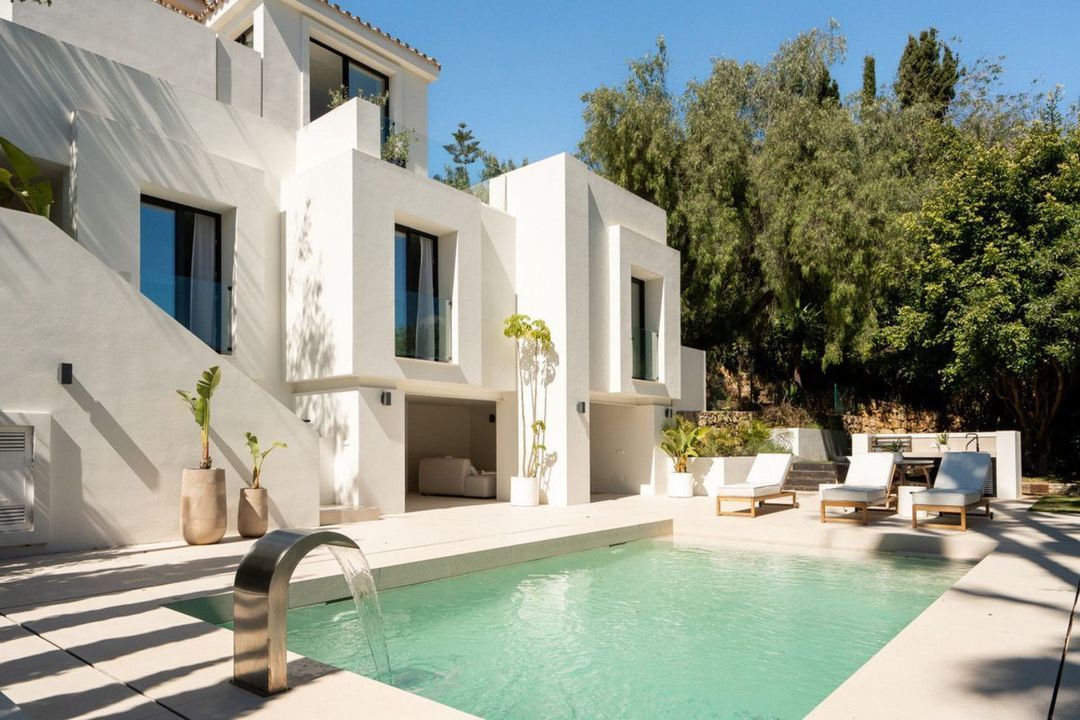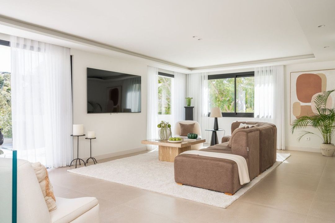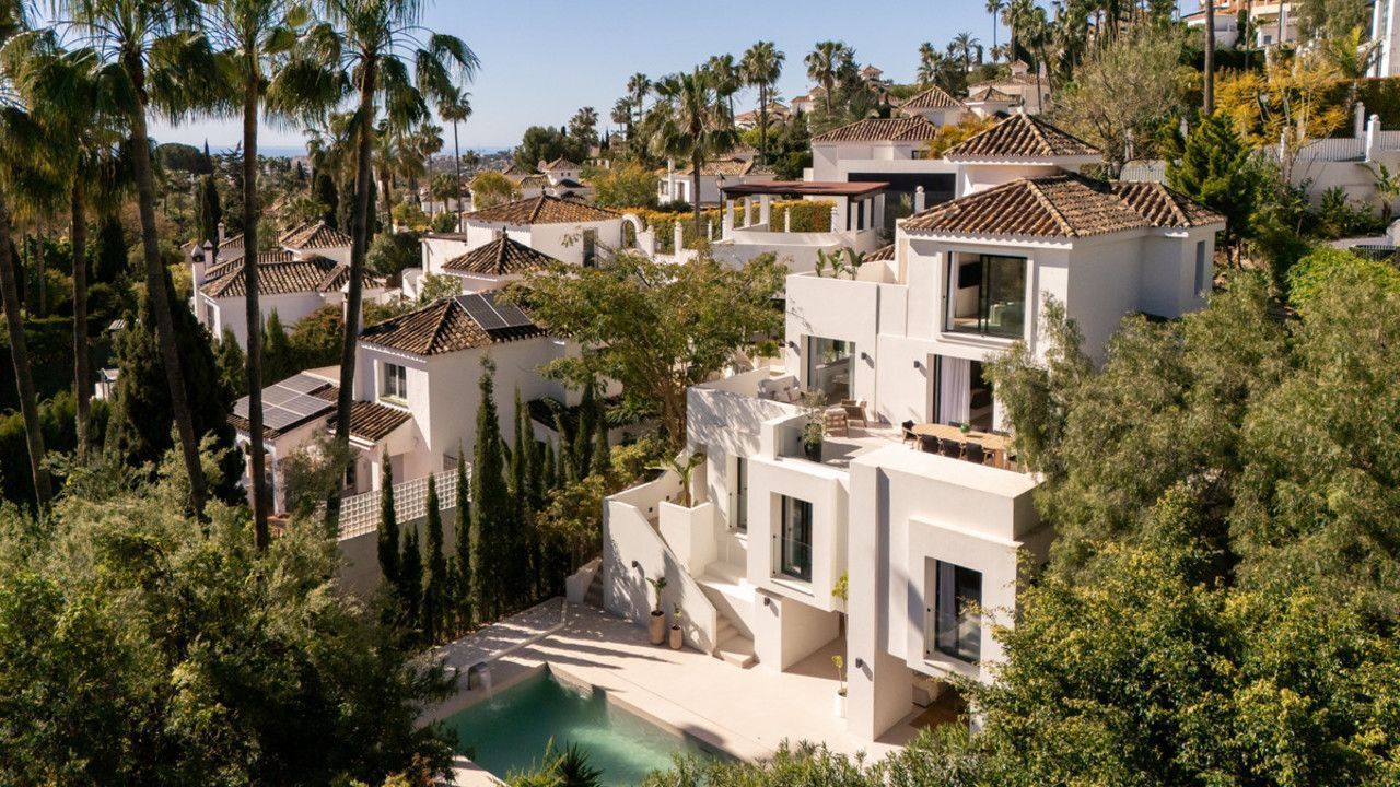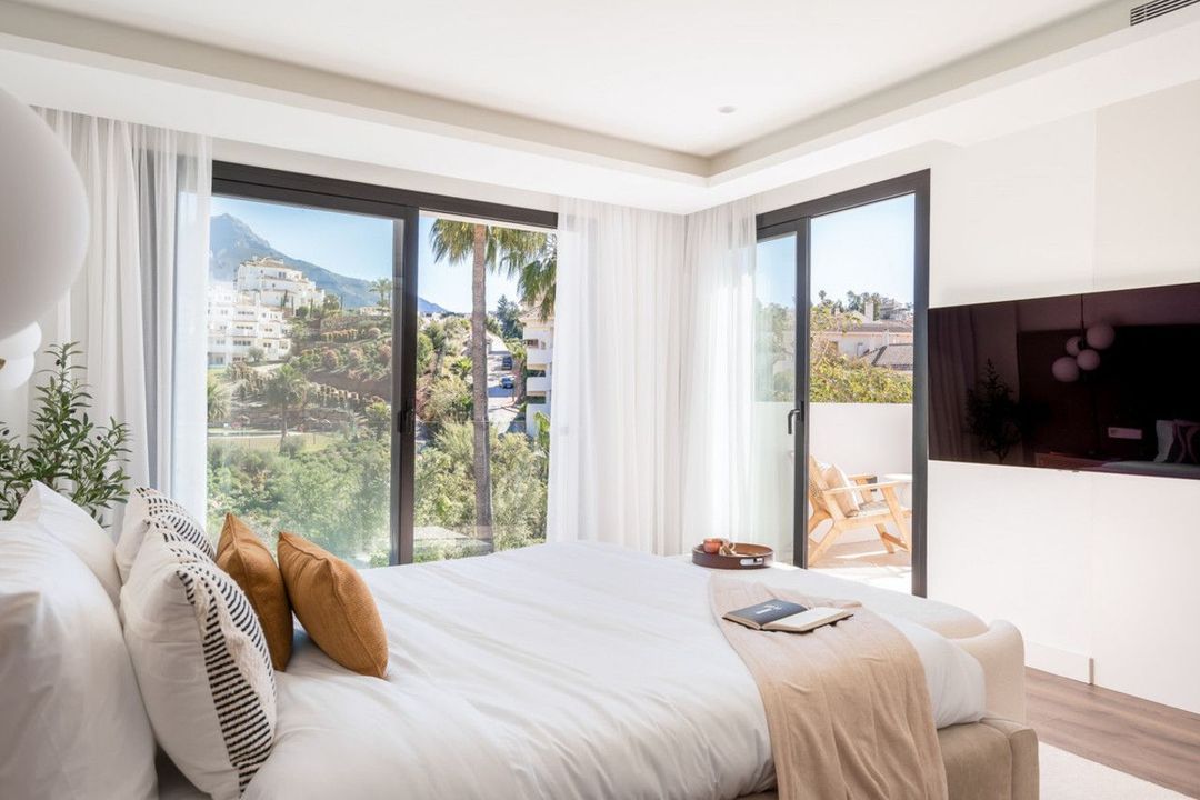 Welcome to a contemporary masterpiece located in the picturesque grounds of Los Naranjos Hill Club in La Cerquilla, Nueva Andalucía. This newly developed Andalusian-style villa offers privacy and elegance in a gated complex. The home's inviting interior is bathed in natural light, featuring warm tones and an expansive double living area, ideal for entertaining or relaxing with family.