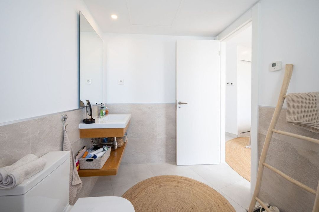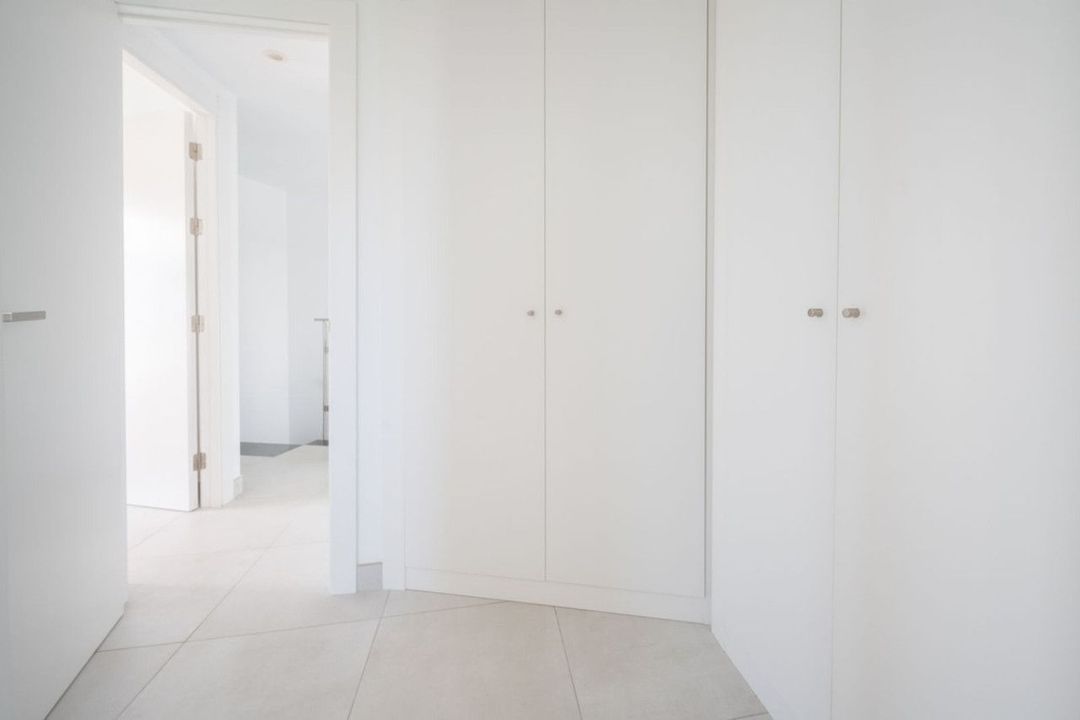 Een verfijnde, moderne trap leidt ons naar boven, waar we nog twee slaapkamers vinden, elk met een eigen badkamer. De hoofdslaapkamer is voorzien van ruime inbouwkasten. Op hetzelfde niveau zien we een tweede open terras, ideaal om te zonnebaden, omdat het volledig privé is en waar men kan genieten van een hapje terwijl men geniet van het ongelooflijke uitzicht.