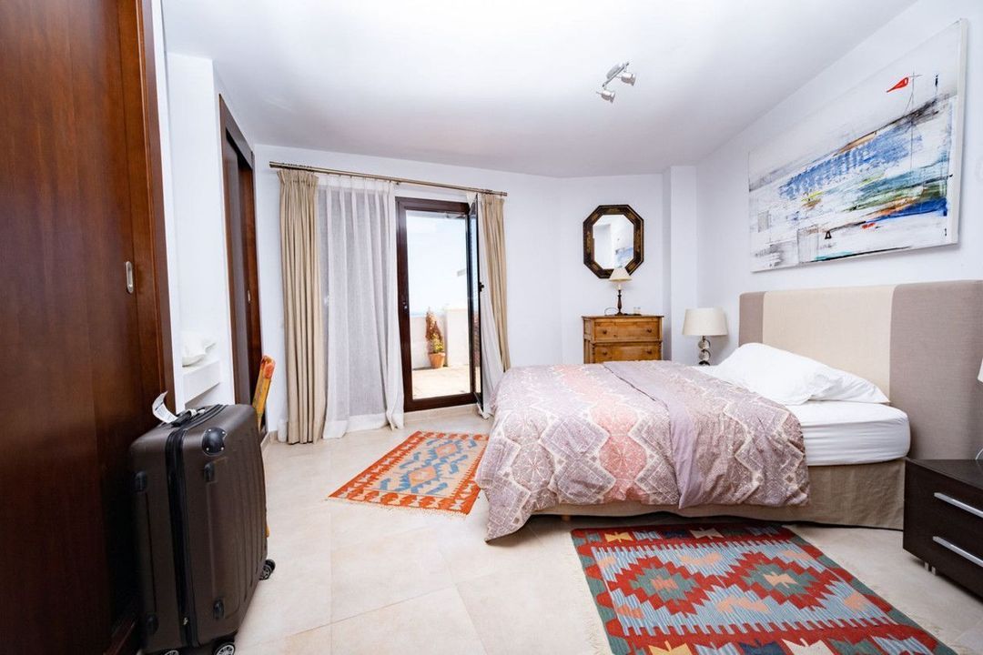 De oorspronkelijke ouderslaapkamers met 2 appartementen zijn omgevormd tot een grotere ouderslaapkamer met een grotere badkamer ensuite. Dit appartement met meerdere verdiepingen heeft nog 2 royale slaapkamers, perfect voor gezinnen of gasten, en elk met een eigen badkamer. Elk niveau biedt een adembenemend uitzicht op zee, waardoor de woning wordt gevuld met natuurlijk licht en de luchtige, eigentijdse sfeer wordt versterkt. De hoogwaardige afwerking en doordachte ontwerpdetails weerspiegelen de charme van de Andalusische architectuur en bieden tegelijkertijd alle comfort van het moderne leven.