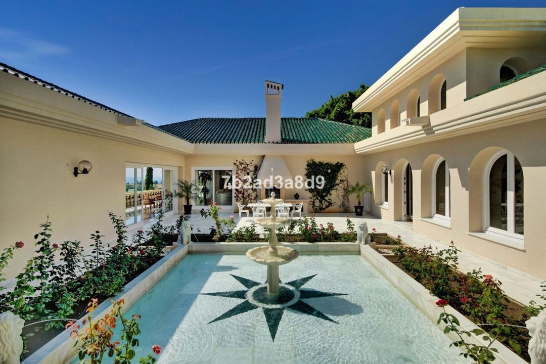 Deze buitengewone vrijstaande villa in Río Real, Marbella, biedt een zeldzame combinatie van klassieke Andalusische elegantie en uitzonderlijk potentieel voor moderne transformatie. Gelegen bovenop een privéheuvel geniet de woning van ononderbroken uitzicht op de Middellandse Zee, weelderige golfbanen en groene valleien—een serene maar indrukwekkende omgeving. Met een ruim perceel van 5.775 m² en 2.600 m² leefruimte biedt het landgoed een opmerkelijke levensstijlkans voor veeleisende kopers die op zoek zijn naar privacy, luxe en architectonische flexibiliteit.