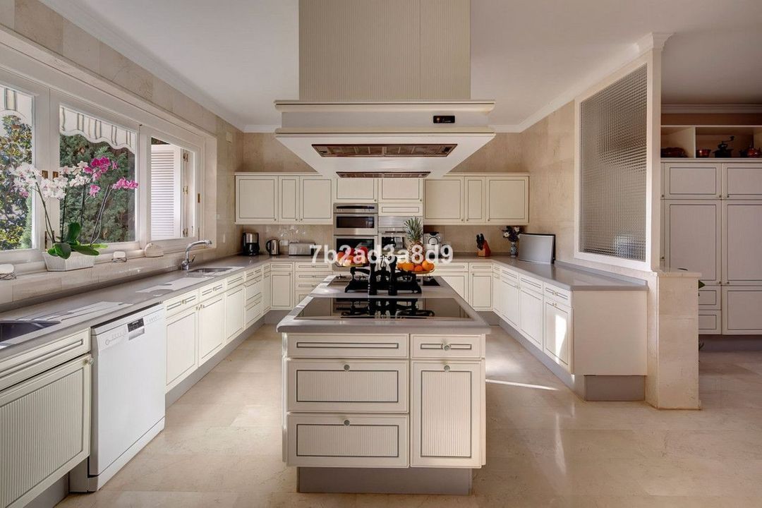 De woning beschikt momenteel over tien slaapkamers en tien badkamers binnen een tijdloze indeling, aangevuld met meerdere lounges, ruime terrassen en een paviljoen dat ideaal is voor wellness, entertainment of als bar in retreat-stijl. Het hoofdgebouw omvat een traditioneel centraal patio met fontein, royale woon- en eetruimtes en suites met directe toegang tot terrassen en het zwembad. Een apart gastenverblijf met twee verdiepingen biedt extra slaapkamers, lounges en keukenfaciliteiten—perfect voor familie of bezoekers. Verder beschikt het landgoed over een garage voor vier voertuigen, prachtig aangelegde tuinen en een indrukwekkend zwembadgedeelte dat is ontworpen om optimaal te genieten van het spectaculaire uitzicht op zee en golf.