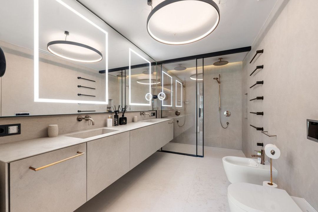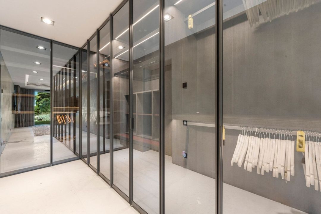 The villa features expansive open-plan interiors filled with natural light, a designer kitchen with Gaggenau appliances, and seamless indoor-outdoor flow through floor-to-ceiling glass doors. Multiple terraces overlook landscaped gardens, a large swimming pool, and private chill-out areas. With guest apartments, a gym, office, and smart home technology, the property offers every convenience for luxury living.