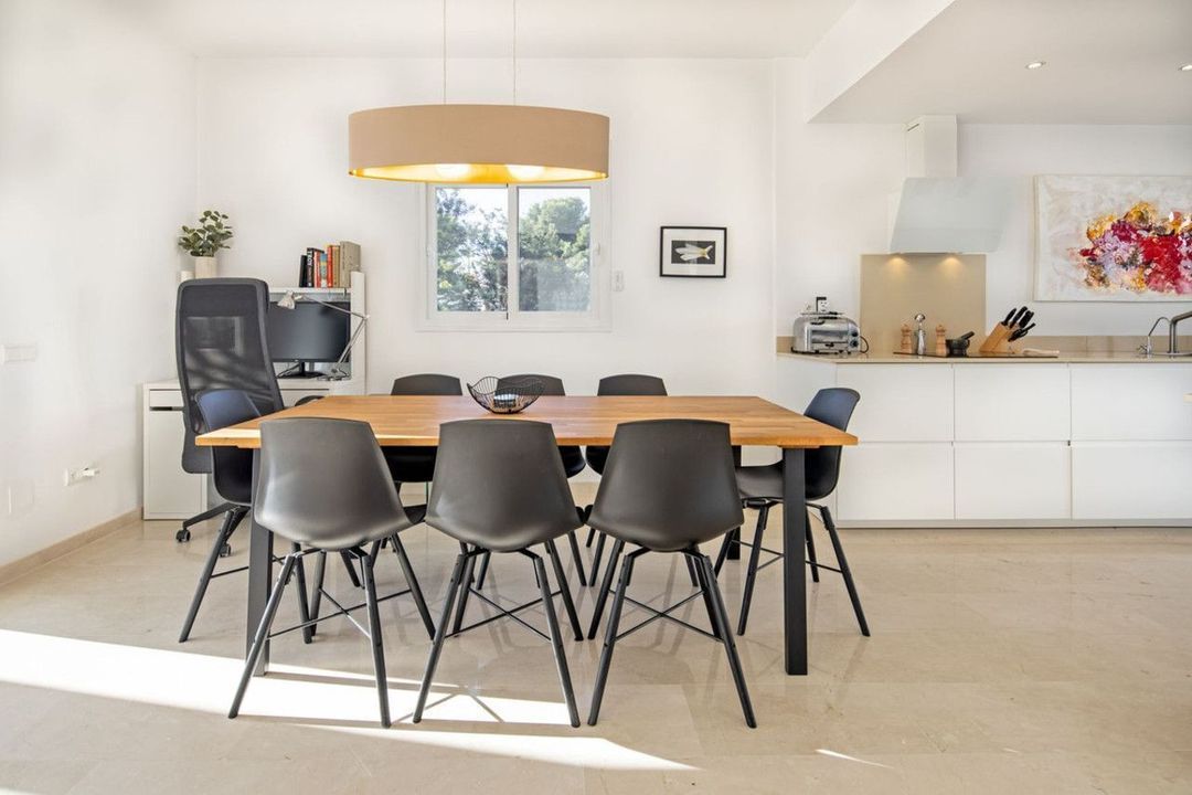 As you arrive, you are greeted by a spacious private courtyard, complete with a covered seating area—the perfect spot to relax or entertain. Step inside and you'll discover a bright and airy open-plan living area seamlessly combining the lounge, dining room, and a modern fully-equipped kitchen. This elegant space flows naturally onto a sun-drenched terrace, ideal for al fresco dining while enjoying the views.