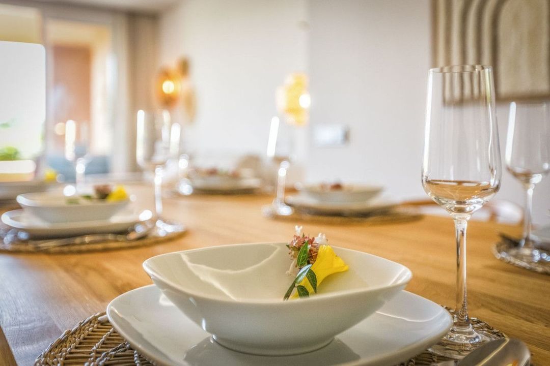 De lichte living opent naar een deels overdekt terras van 57 m². Er is een volledig ingerichte keuken en een aparte bijkeuken/wasruimte. Twee badkamers, waarvan één en-suite, en twee fijne slaapkamers. Vanaf het privé terras kijk je uit op het hoofdzwembad.