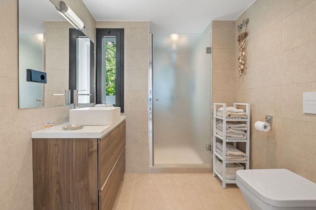 De bovenverdieping is volledig gewijd aan de master suite – een sublieme privéverblijfplaats waar luxe en rust elkaar ontmoeten. Vanuit het bed geniet u van een onverstoord uitzicht op de bergen en de zee. De suite omvat een ruime dressing, een stijlvolle loungehoek en een badkamer die pure elegantie uitstraalt. Het uitzicht op La Concha vanuit het bad is simpelweg betoverend – een dagelijkse herinnering aan het buitengewone leven dat deze villa te bieden heeft.