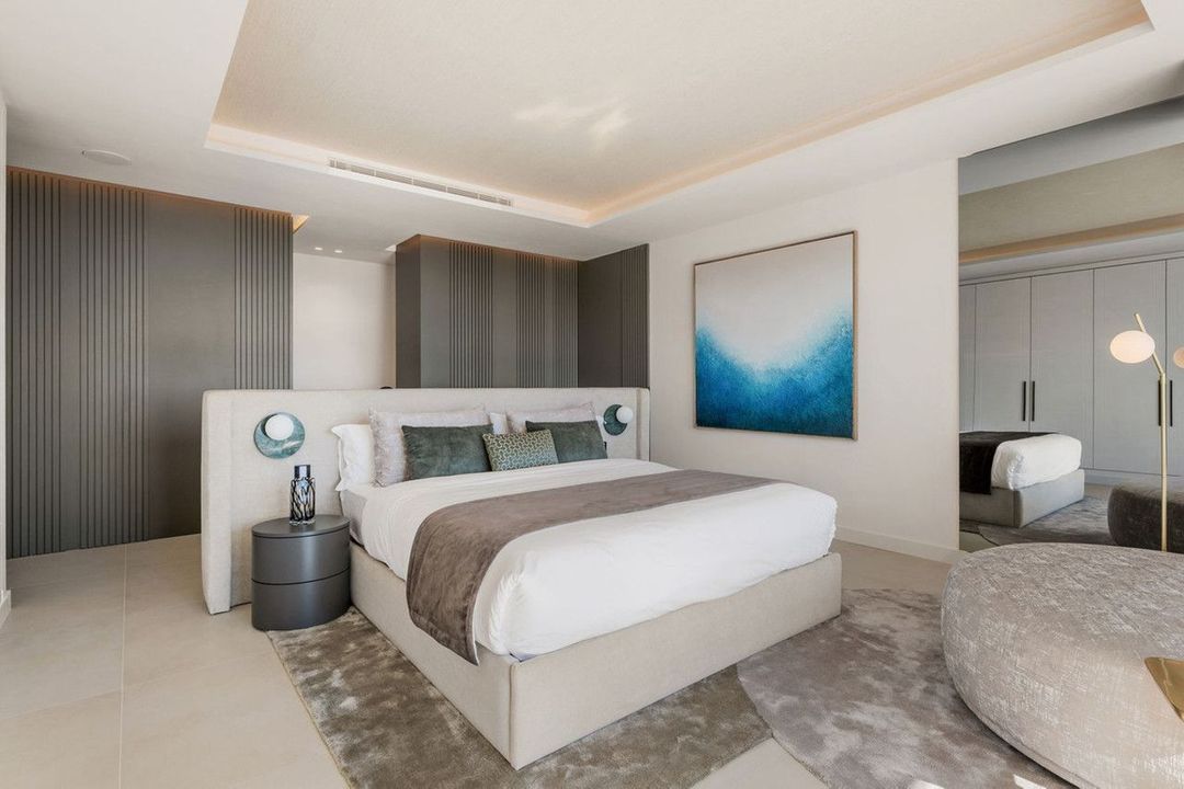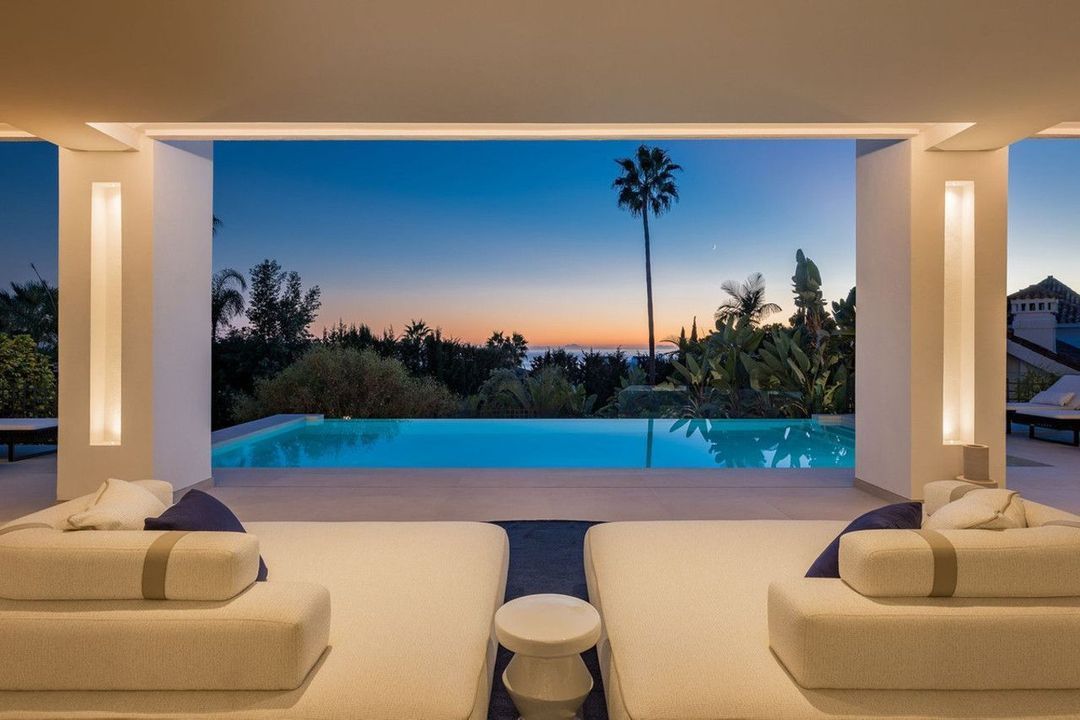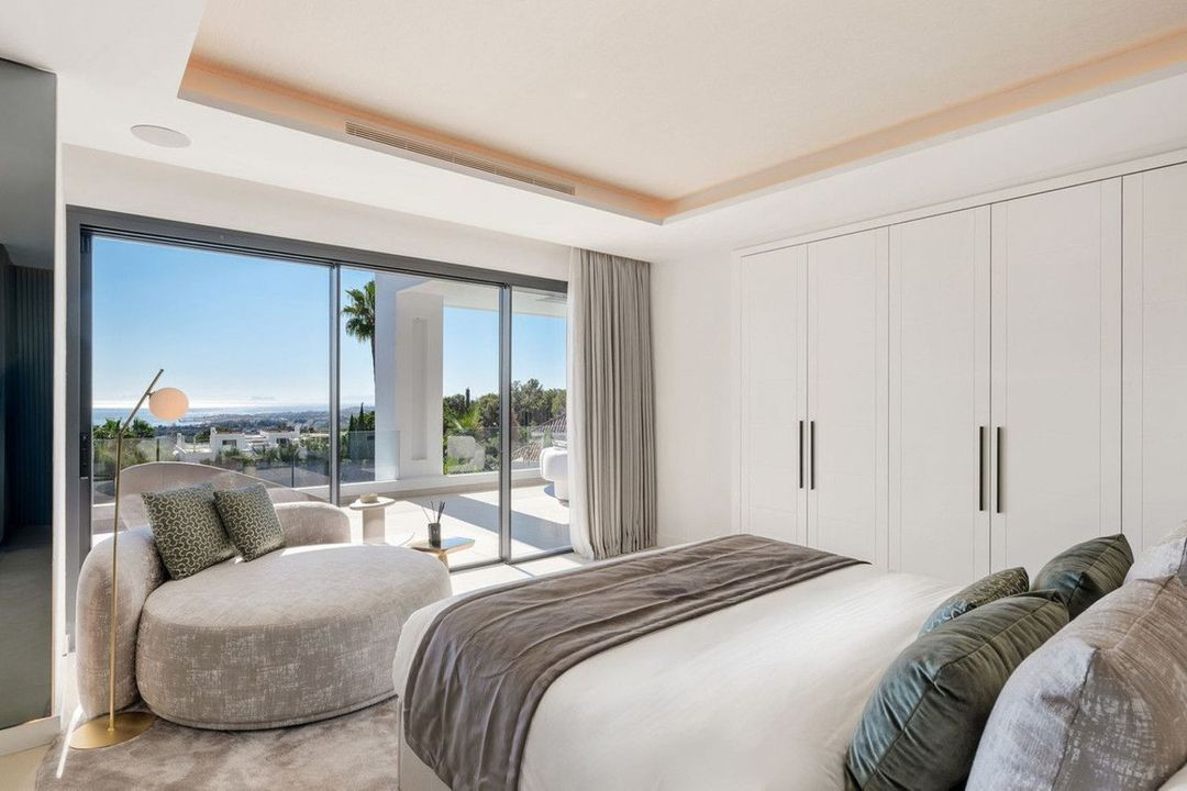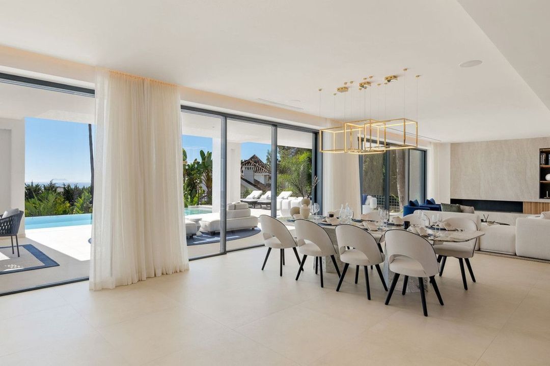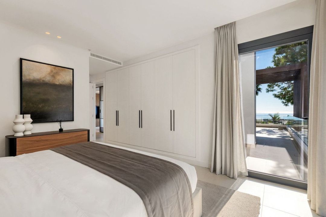 This exquisite villa is situated in a stunning location on the slopes of La Concha mountain within the prestigious private urbanization of Sierra Blanca, located on Marbella's Golden Mile. Here, serenity, a natural environment, and closeness to the city's most renowned landmarks create a tranquil atmosphere, just a few minutes away from Marbella's city center, the historic old town, the Roman Bridge, and Puerto Banús. The villa underwent a complete renovation in 2025. The furniture is available for purchase separately at a price of €350,000 plus VAT. Notable features include aerothermal heating, an automatic irrigation system, glass doors, built-in wardrobes, a laundry area, an open-plan fully equipped kitchen/living room, 24-hour security, a wine cellar, air conditioning, a barbecue, double glazing, a guest toilet, marble flooring, a sauna, a gym, underfloor heating, an alarm system, a basement, furnishings, security cameras, a cinema room, a fireplace, a private community, a jacuzzi, a Turkish bath, a dressing room, porcelain tile flooring, and more.