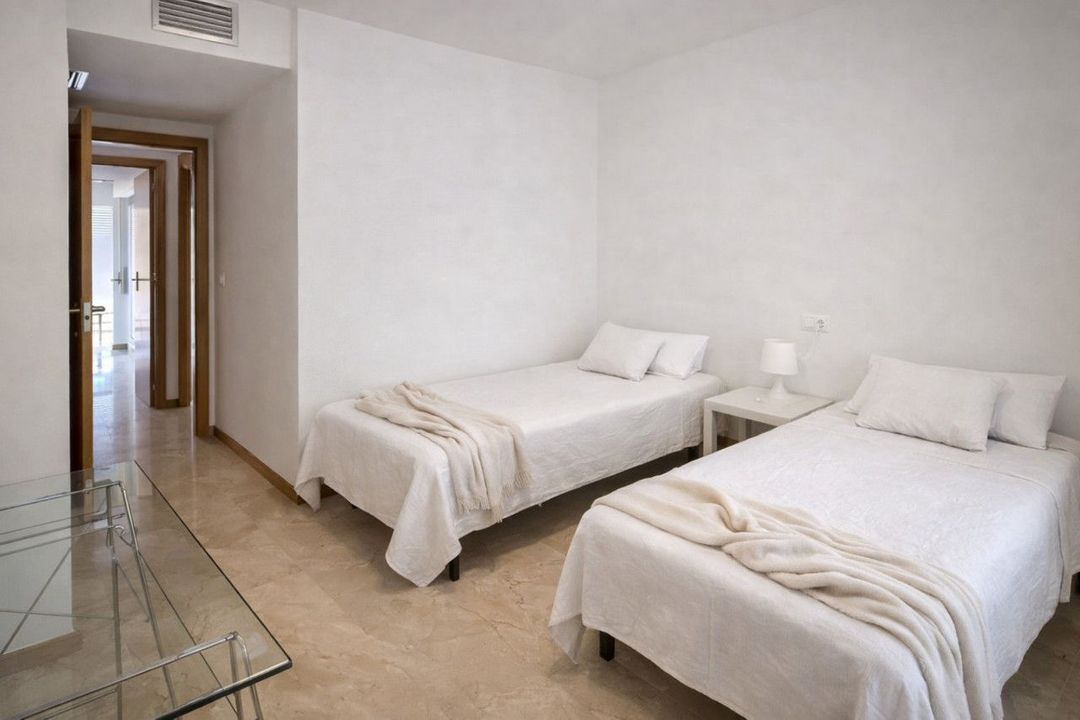 The apartment comprises two well-proportioned bedrooms, both with built-in wardrobes. The master bedroom stands out for its natural light and direct access to the terrace, providing added comfort and privacy. The property also offers two fully fitted bathrooms with a modern and functional design.