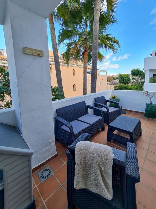 Elevated ground floor apartment in La Maestranza, Nueva Andalucia. A closed development with 24 hour security, very well maintained gardens and green areas with 2 pools (one of them heated). Spacious apartment with parquet floors. It could be converted into a Scandinavian style to rise the value. All shops and restaurants are on your doorstep and a 15 minute walk to Puerto Banus and the beach. A/C hot and cold. Terrace for romantic dinners for two or party or bbq with friends Garage space is included in the price.