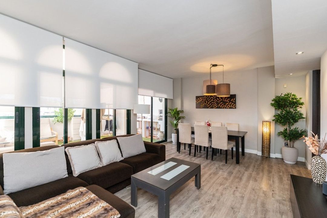 Apartment on one level in the complex El Mirador de Santa Maria Golf in Elviria in East Marbella. The apartment offers three bedrooms, two bathrooms, a fully equipped modern kitchen, a large and bright living room with access to the covered and glazed terrace. Fully refurbished and equipped with AC hot and cold, wooden floors and sold furnished. South orientation. The price includes a double underground parking space and a large storeroom. Gated complex with three pools and gardens just next to the Santa María Golf Course and within a short drive to all amenities as well as the beach. The centre of Marbella and shopping centres are a 10 minutes drive away.